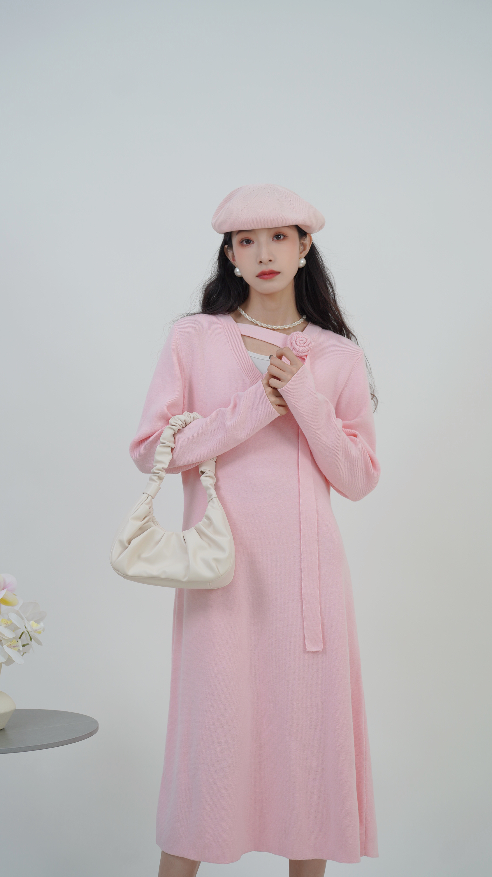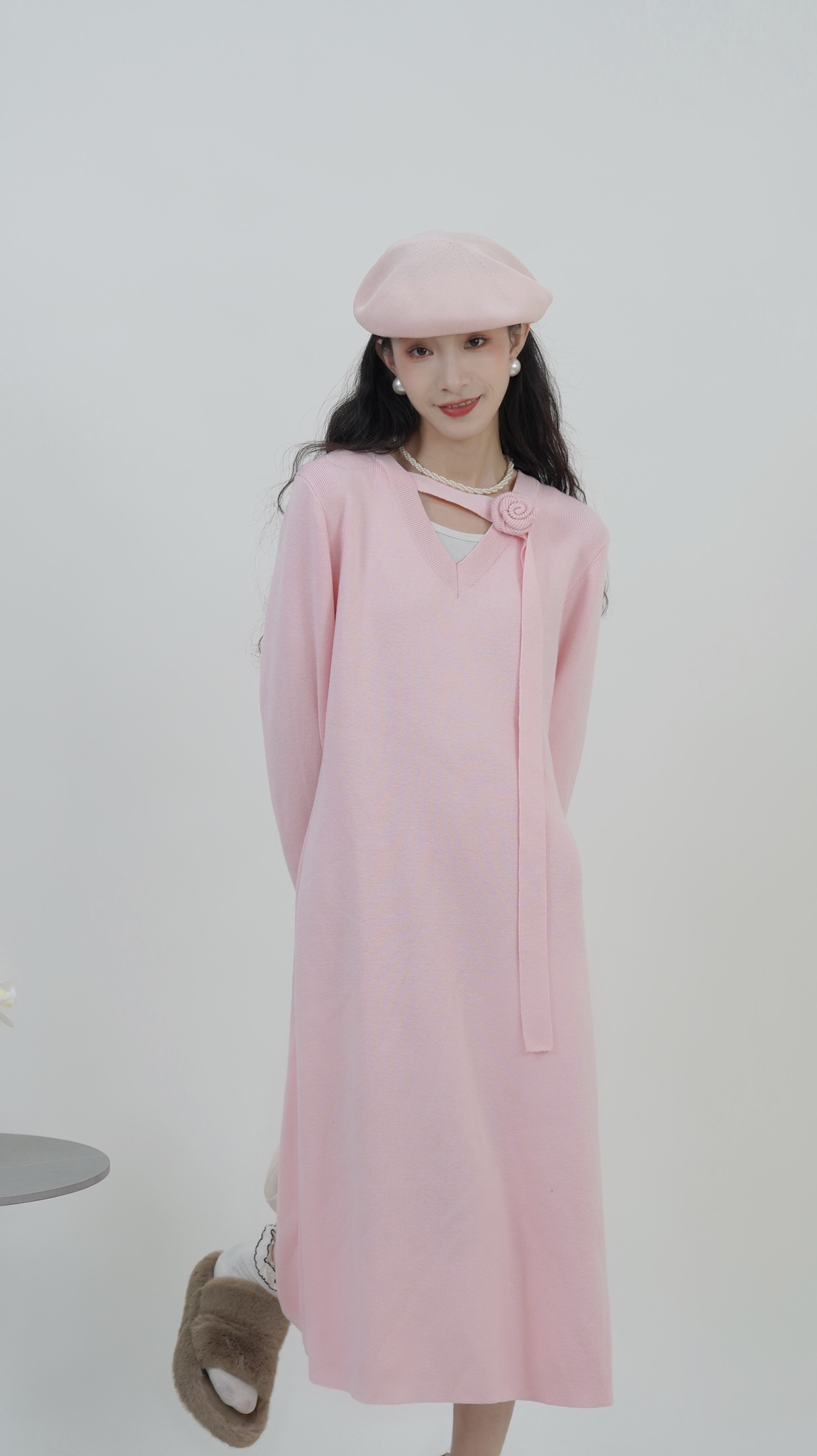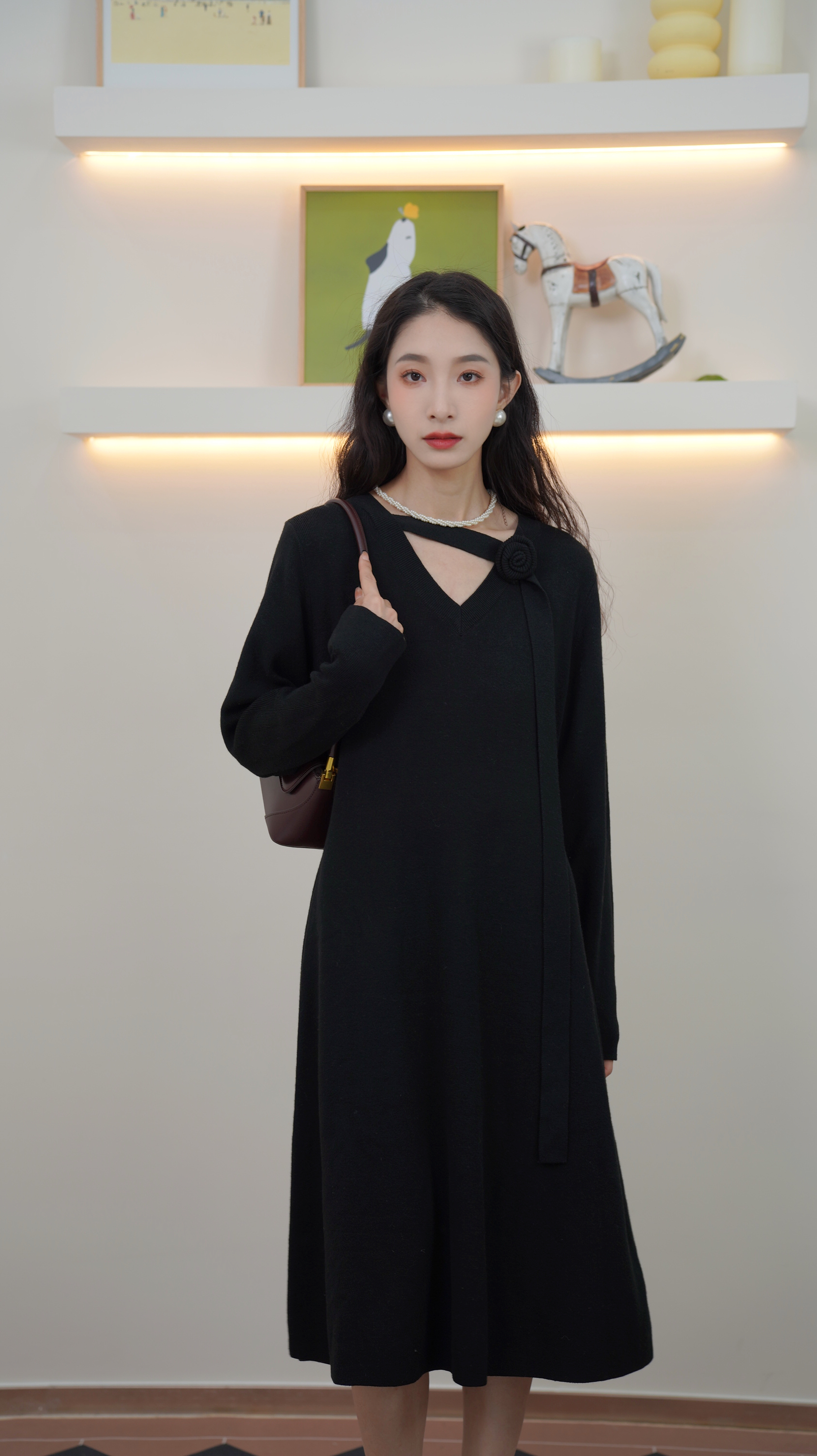 两三事2023气质长袖针织复古法式女装显瘦温柔毛织连衣裙