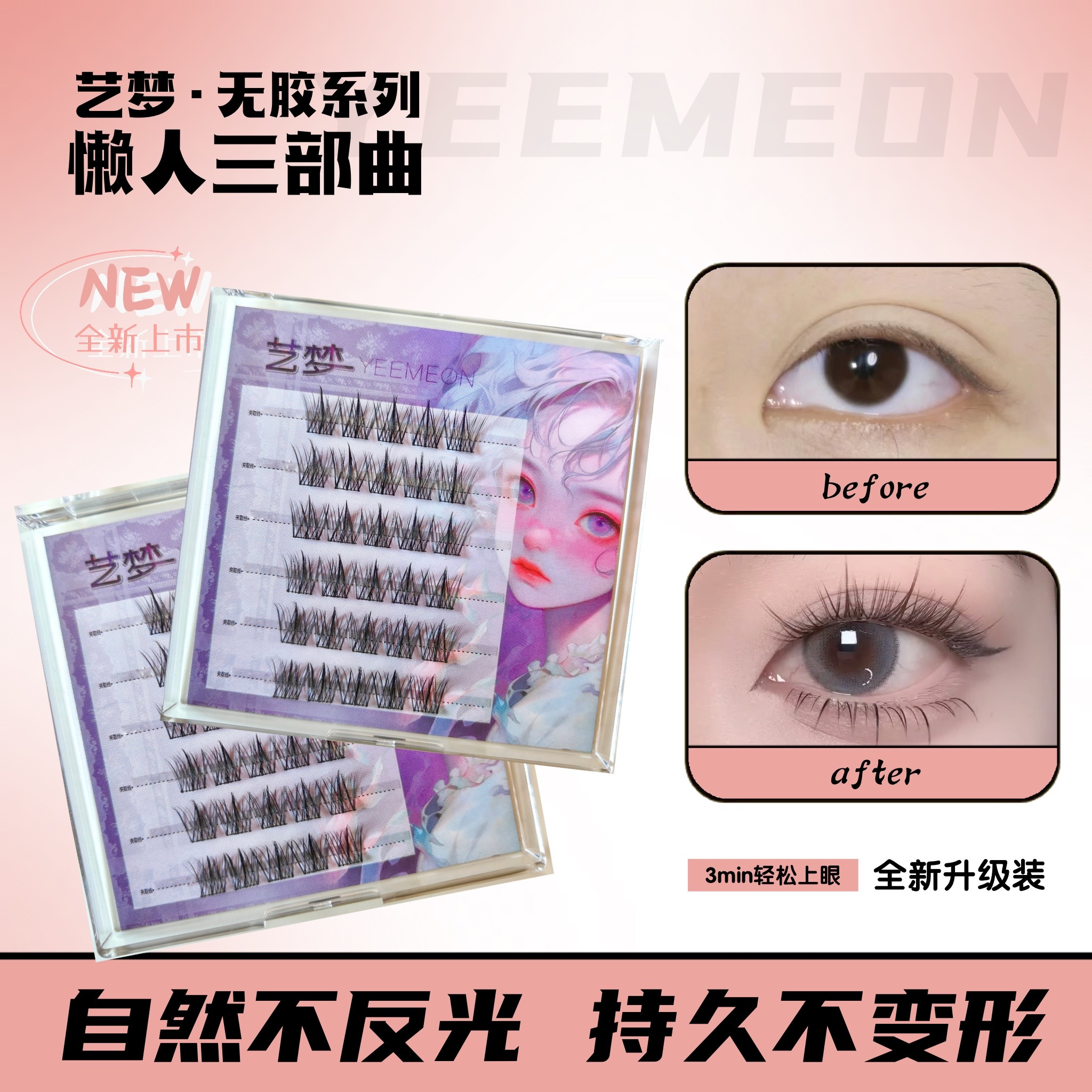 艺梦假睫毛 含镊子 无胶款6排基础款 持久一整天