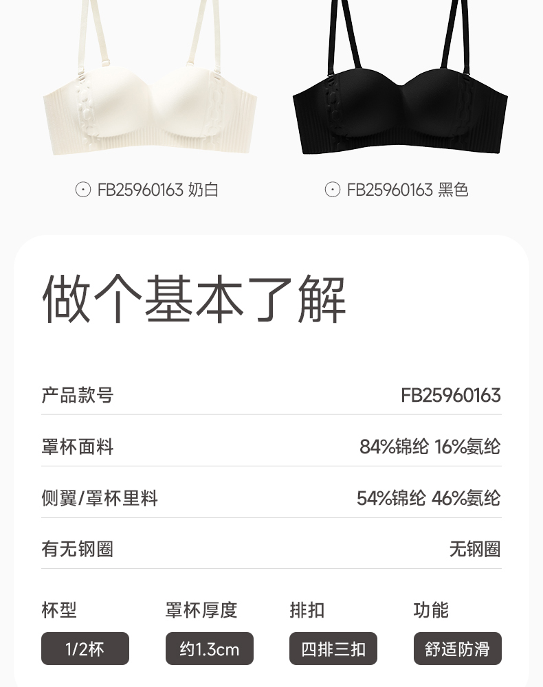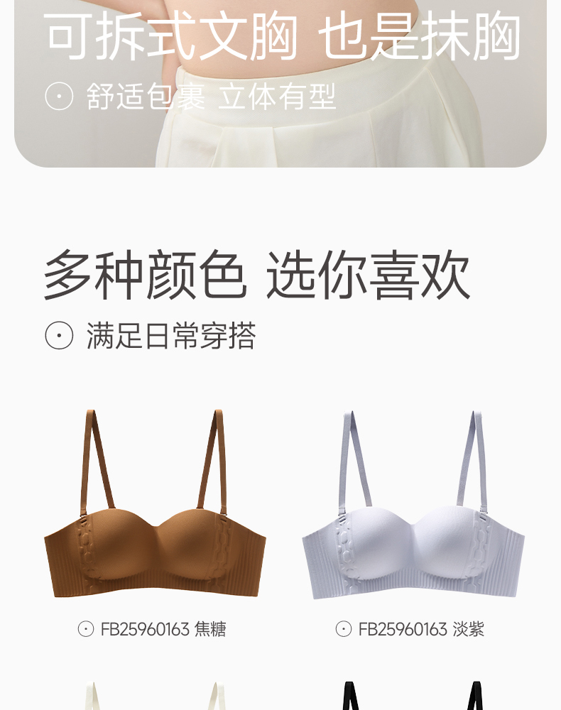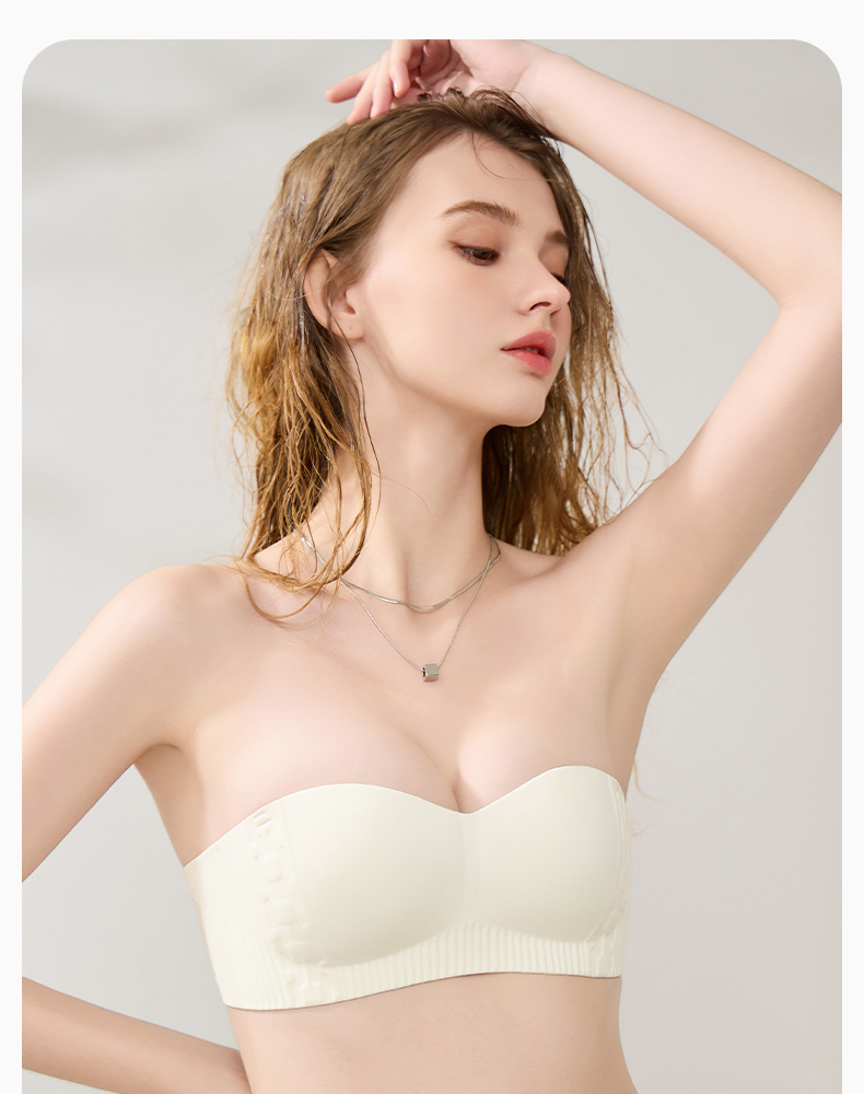 芬腾女抹胸内衣上托光面防滑收副乳文胸性感舒适无肩带无钢圈胸罩