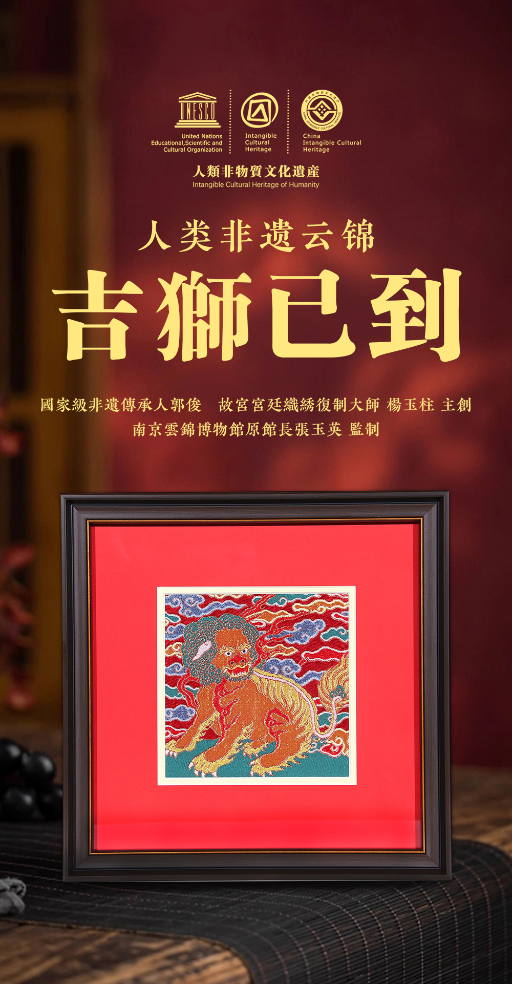 《吉狮已到》人类非遗 千年传承,皇家御制 ji致再现,人类非遗大师郭俊 宫廷织绣大师杨玉柱联袂创作