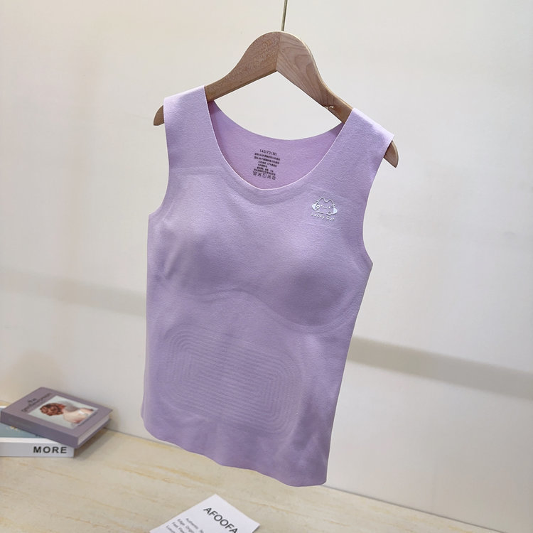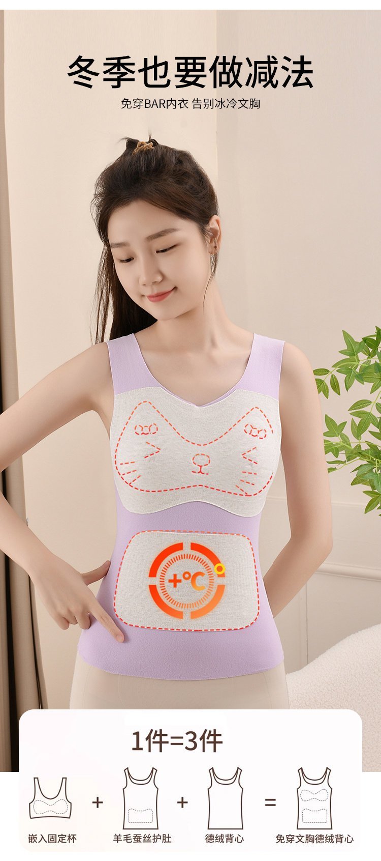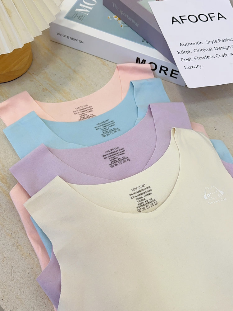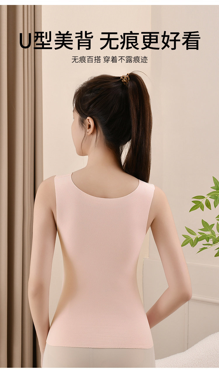 【保暖服饰丨猫人少女蚕丝保暖背心】面料亲肤舒适,触感细腻,高弹贴身不易变形,秋冬穿脱更自在,U型美背无痕百搭,穿着不露痕迹,自带BRA内搭减负,穿一件就够了,下单不支持备注不同尺码