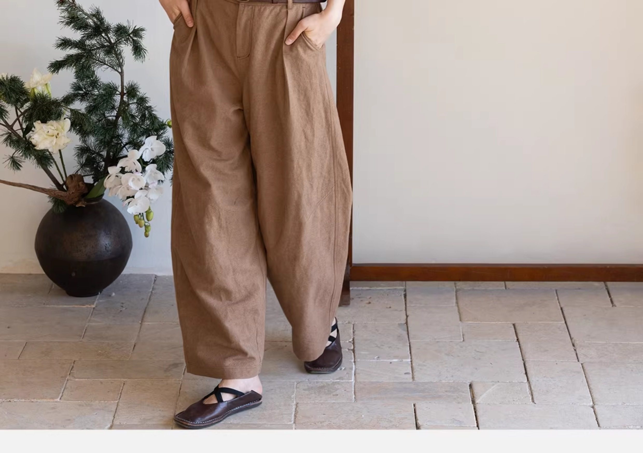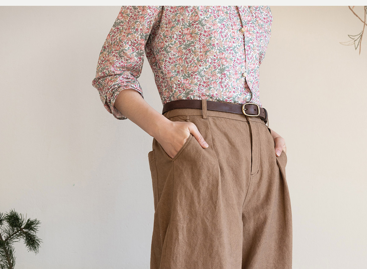 牧衣游原创 棉麻净色裤子新款宽松通勤古朴百搭休闲长裤 鼓笛令