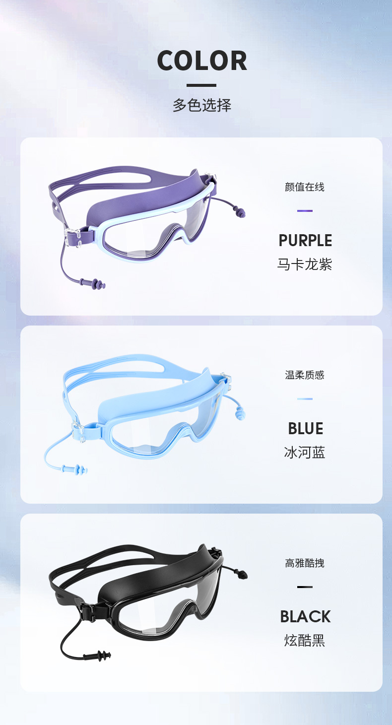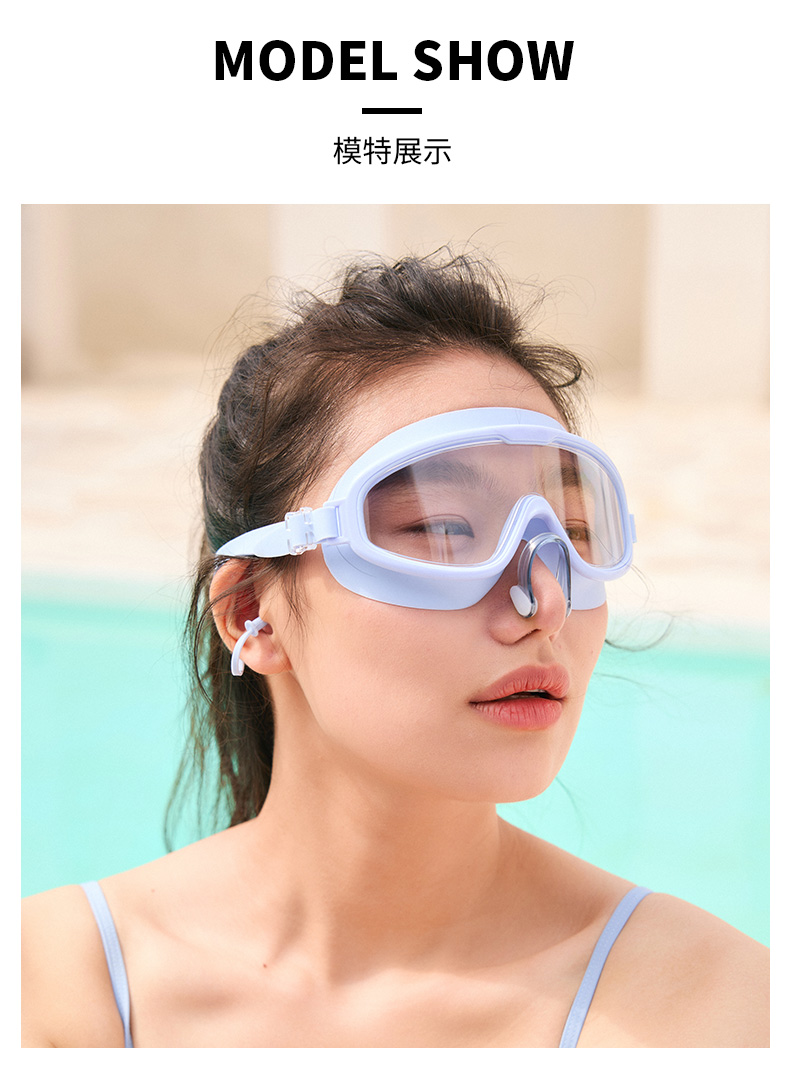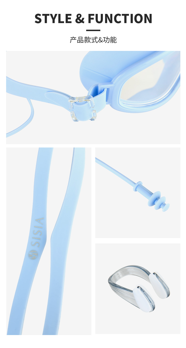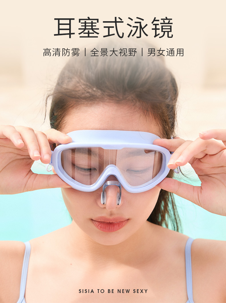 sisia2025新款游泳眼镜带耳塞鼻夹大框高清防雾防水男女通用泳镜62W02S1G 62W02S2G 62W01S1G