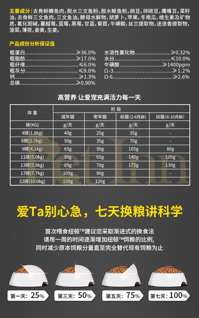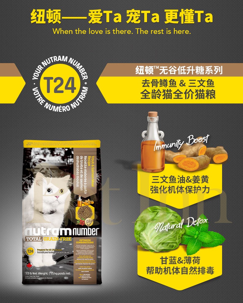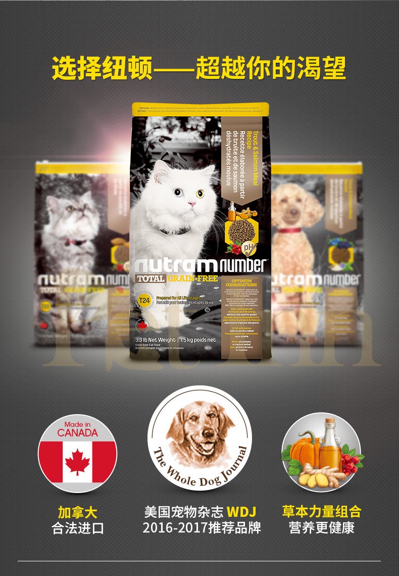 纽顿 猫粮T24 无谷鳟鱼鲑鱼配方 全价全期猫粮 5.45kg