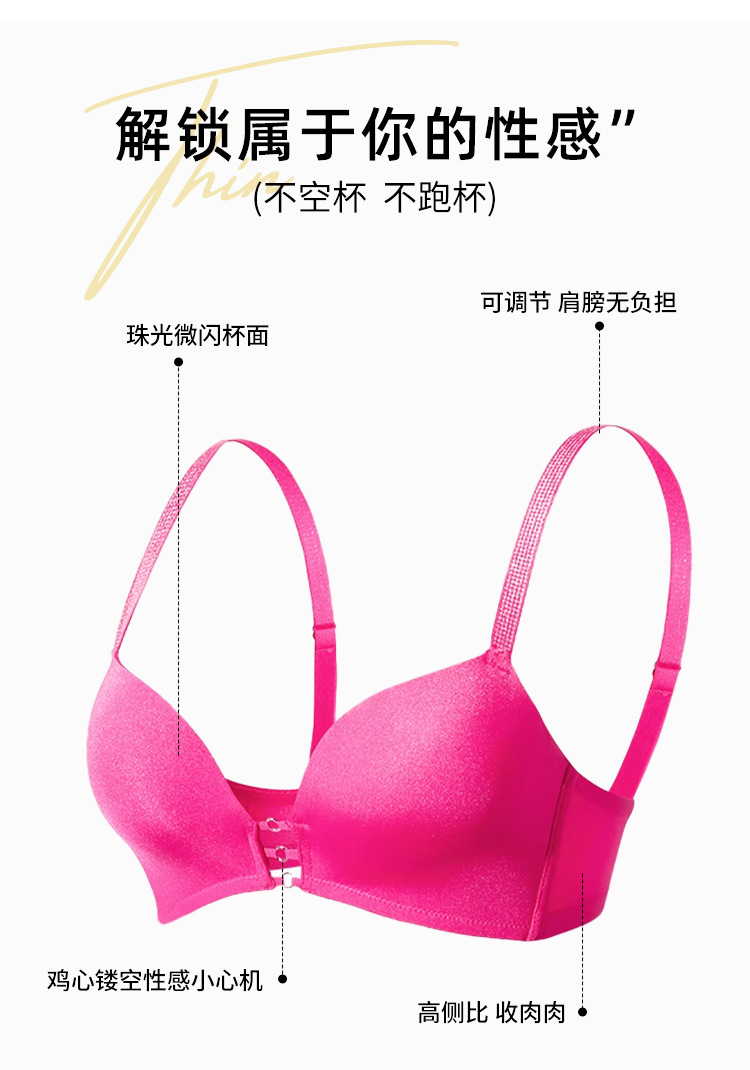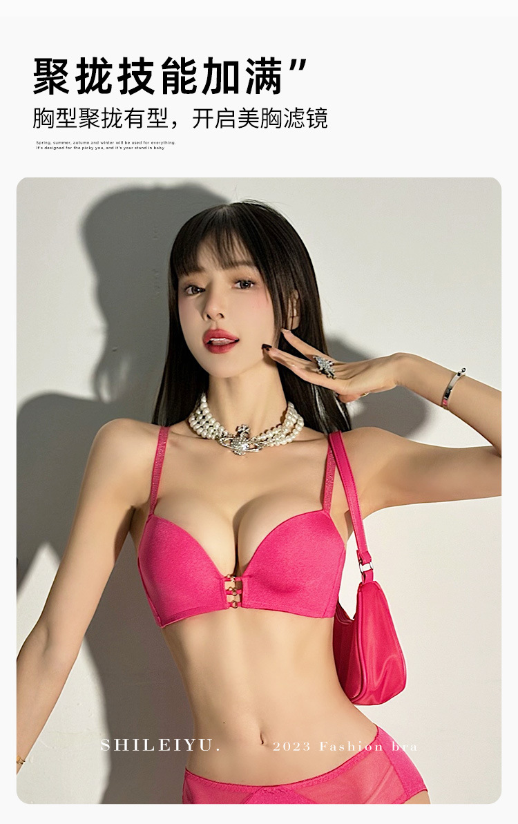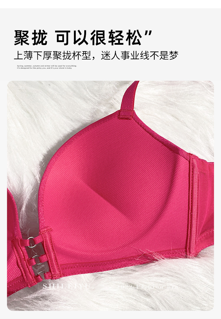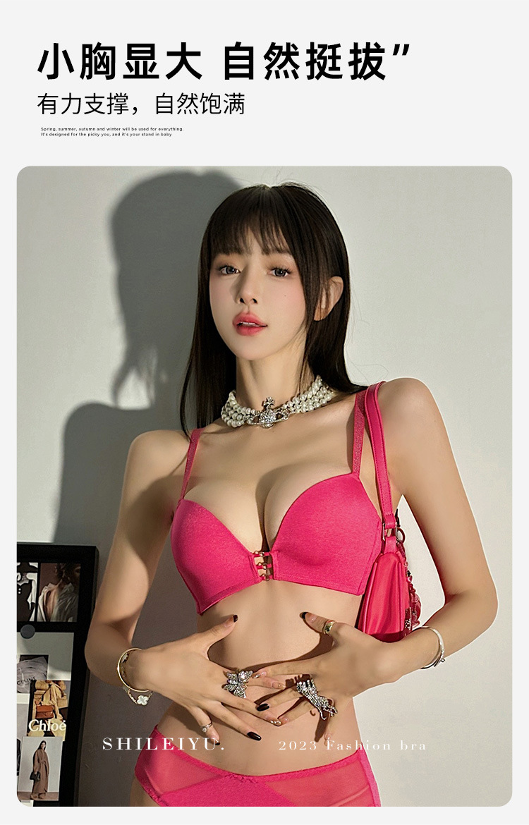 玫红色性感内衣女小胸聚拢上托显大文胸收副乳防下垂秋冬加厚胸罩2025新款爆款小红书同款