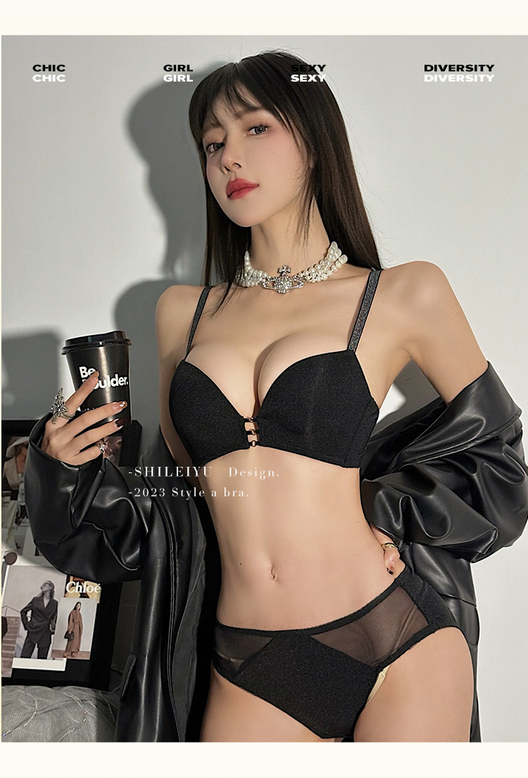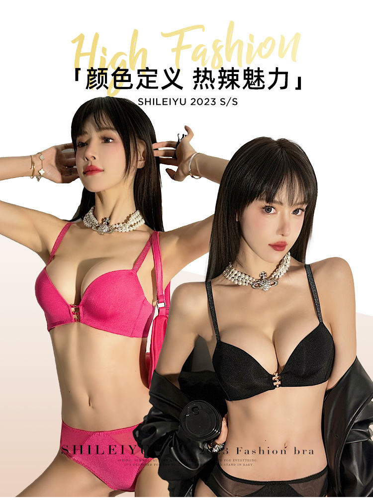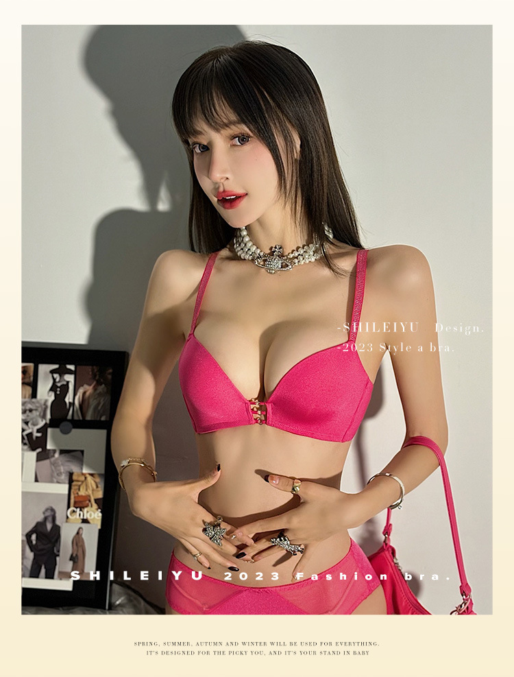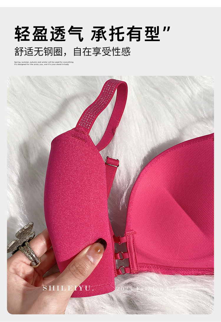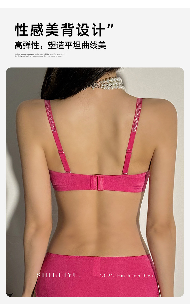 玫红色性感内衣女小胸聚拢上托显大文胸收副乳防下垂秋冬加厚胸罩2025新款爆款小红书同款