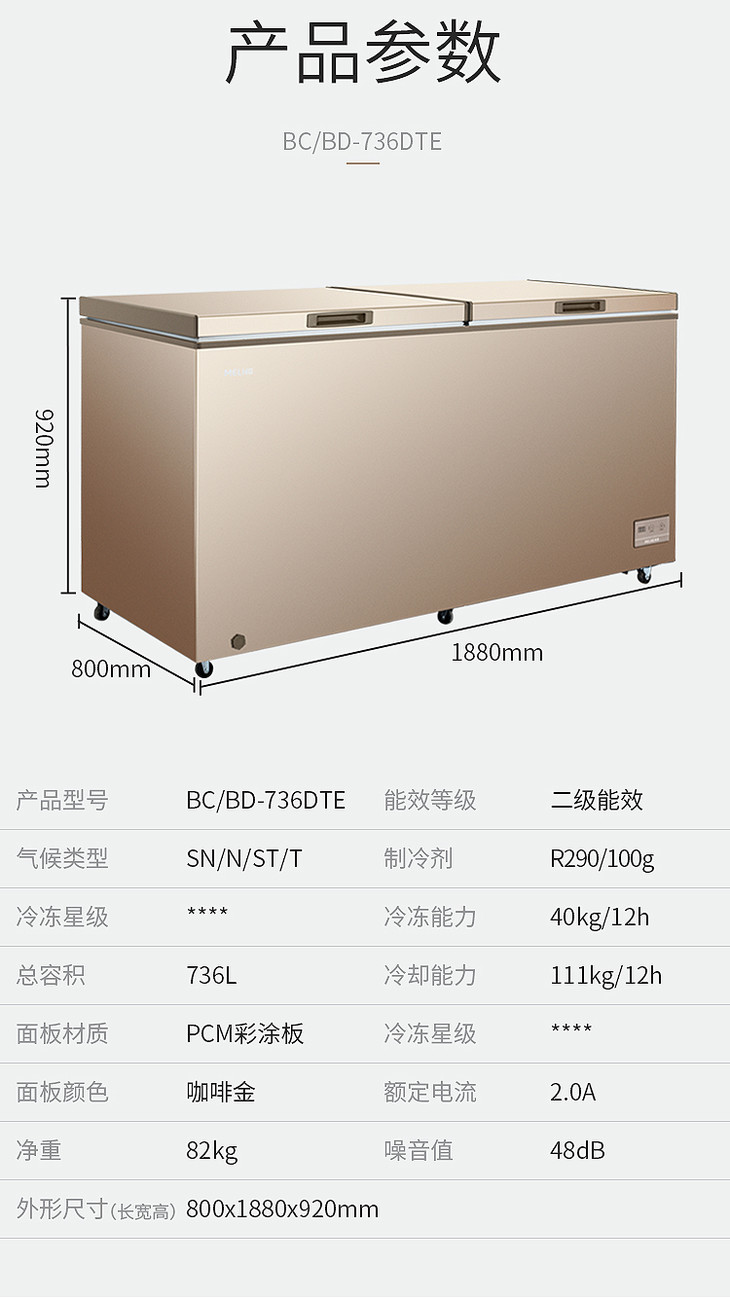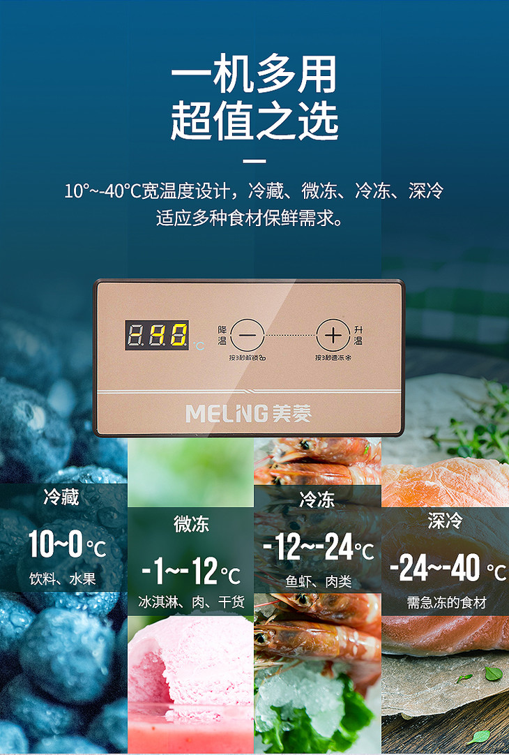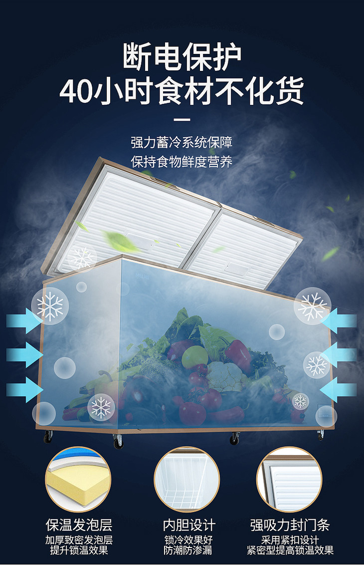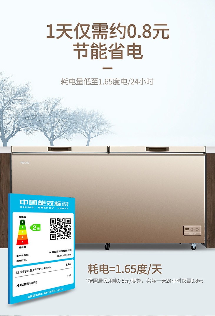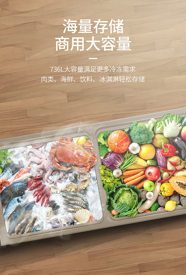 美菱(MELING) BC/BD-736DTE 736升 冰柜商用 一机多用 大冷冻力 冷冻冷藏 家用商用卧式大容量冷柜