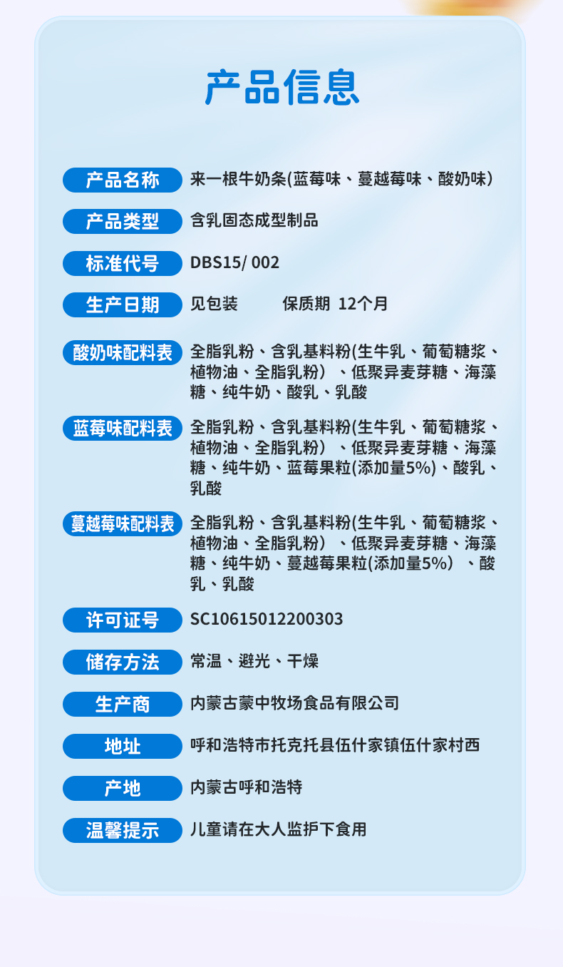 小奶花 来一根牛奶条 酸奶味/蓝莓味/蔓越莓味