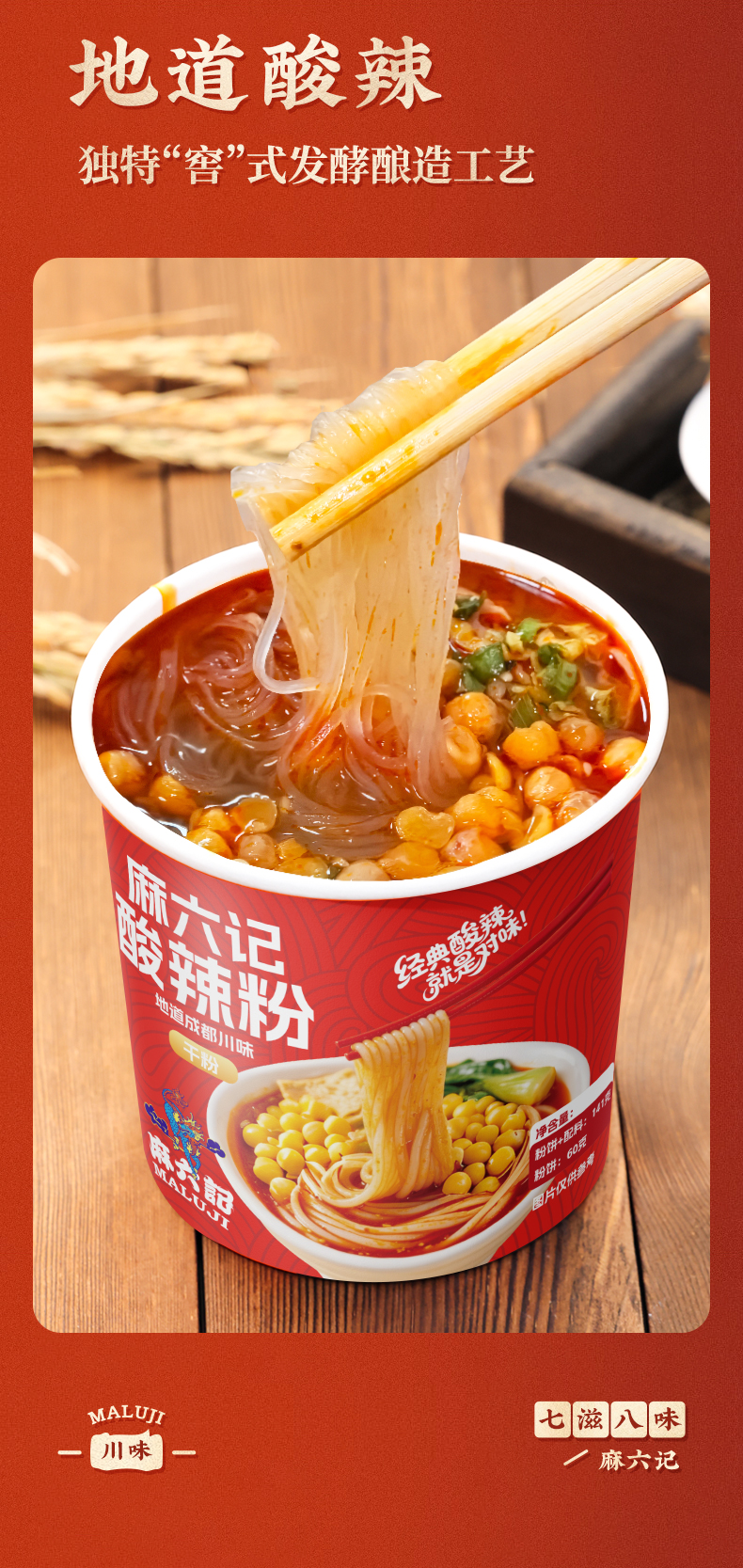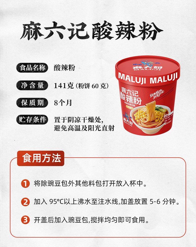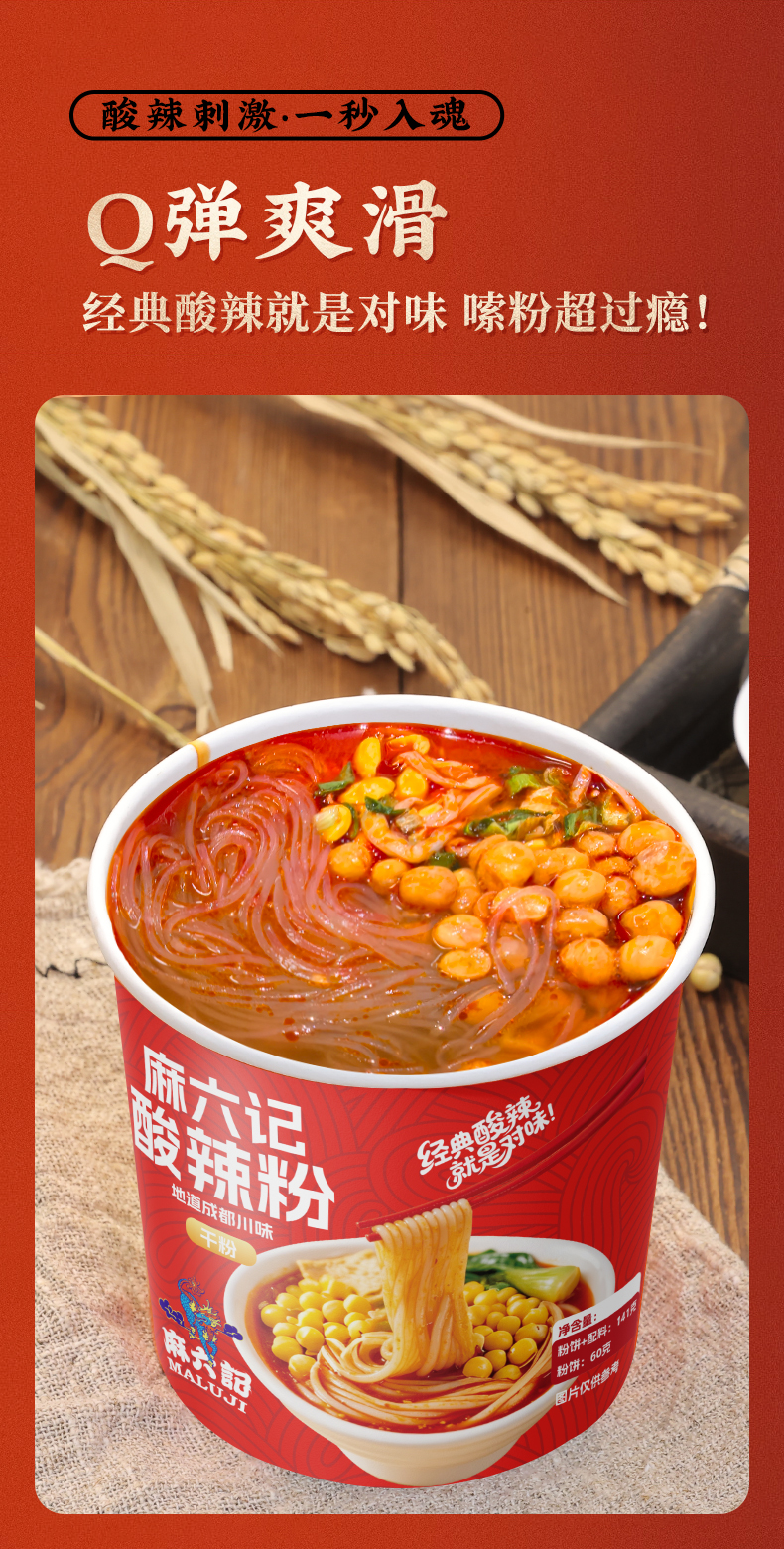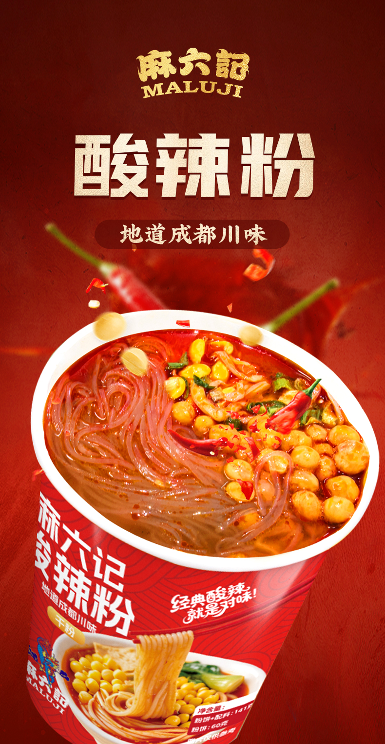 【优选好货】麻六记干粉酸辣粉141g*6桶