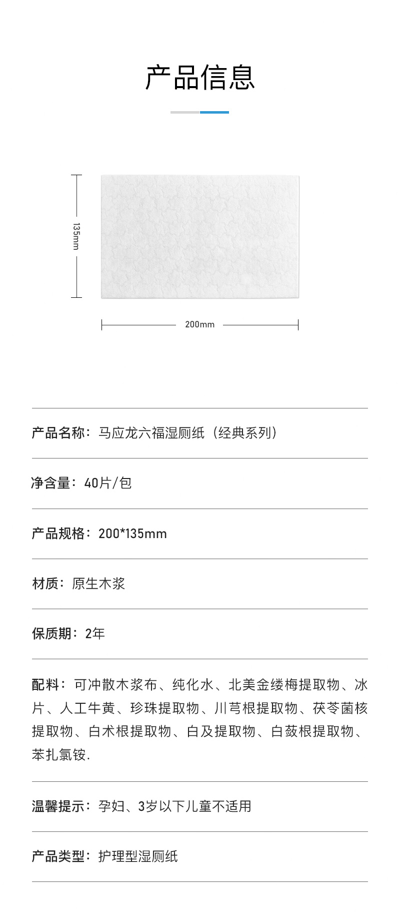 【已下架】远离如厕烦恼 | 马应龙六福 湿厕纸 有痔青年/姨妈期少不了 清爽不黏腻 马桶可冲散120抽[福利品]