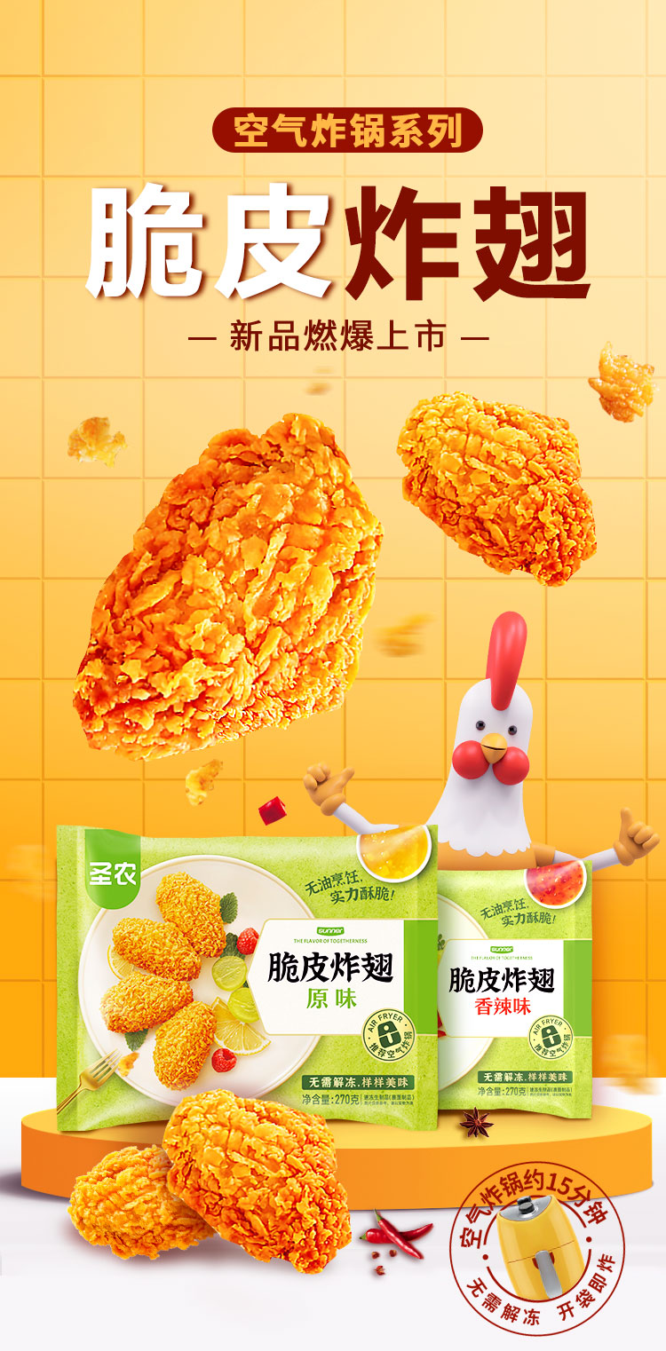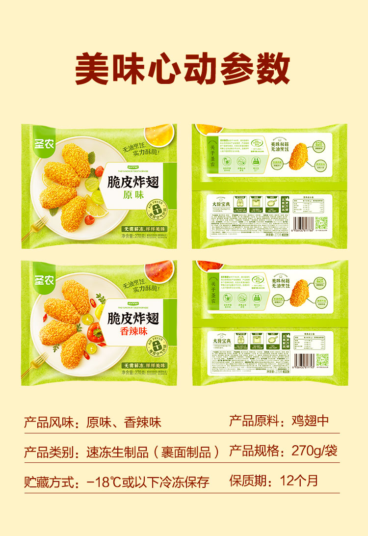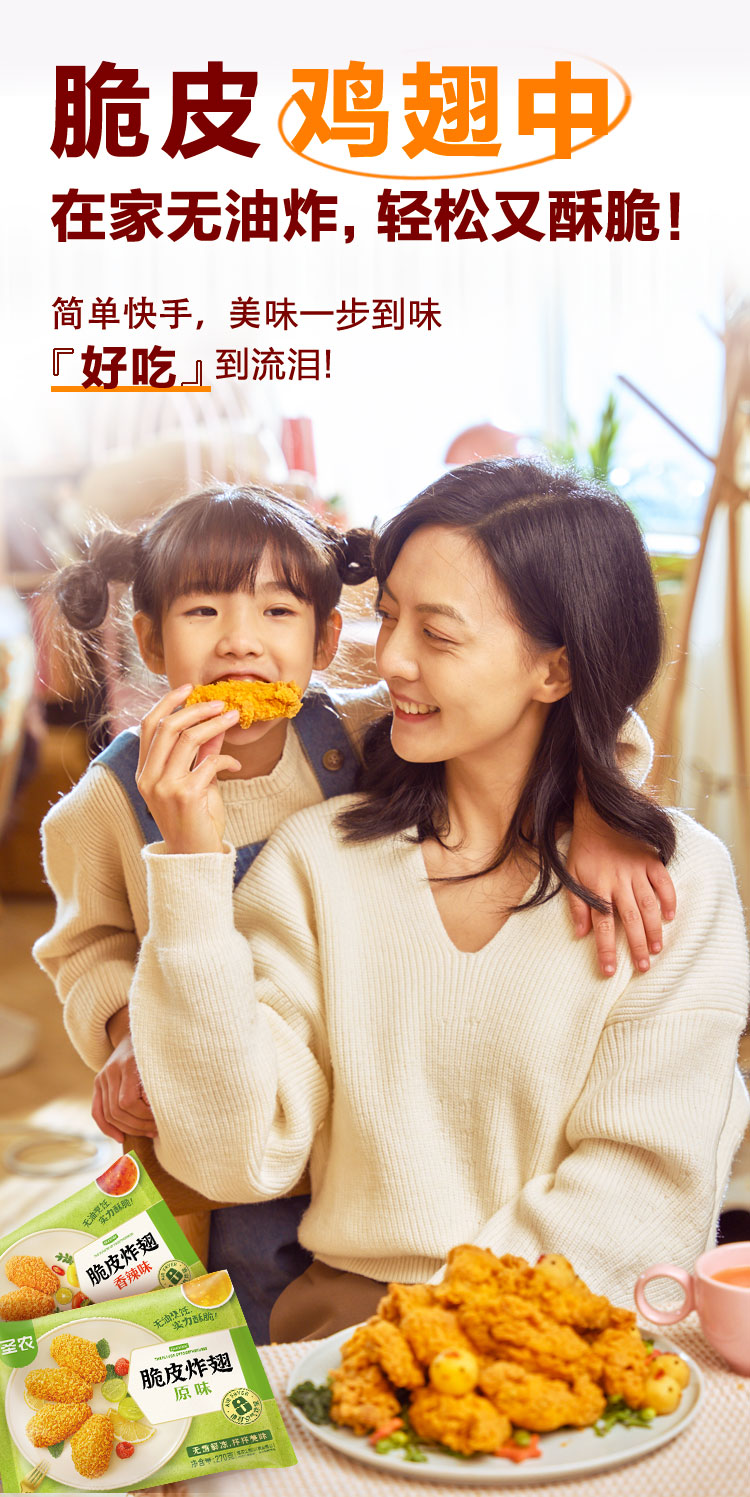 【脆皮炸翅】圣农脆皮炸翅原味香辣味270g*6包共1620g+赠(小炸鸡*2包)