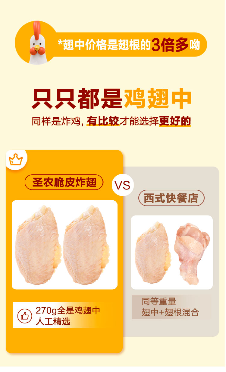 【满200-100】圣农原味脆皮炸翅香辣味脆皮炸翅270g*1包