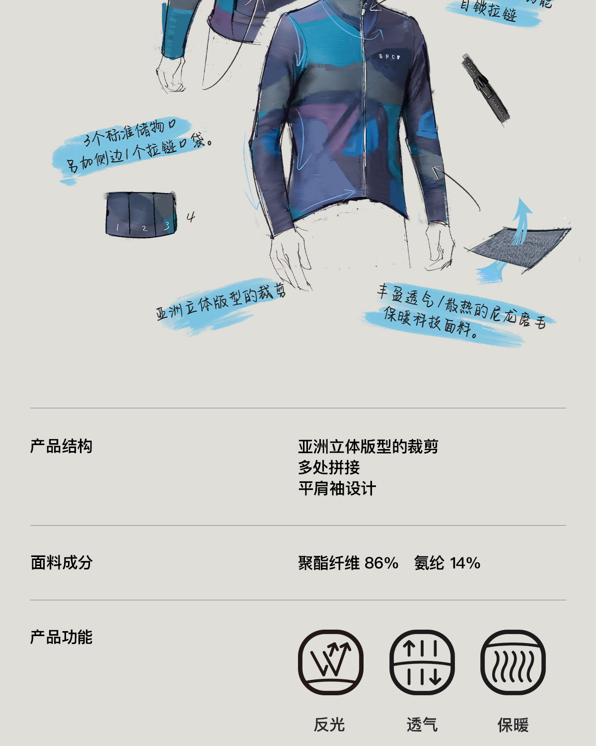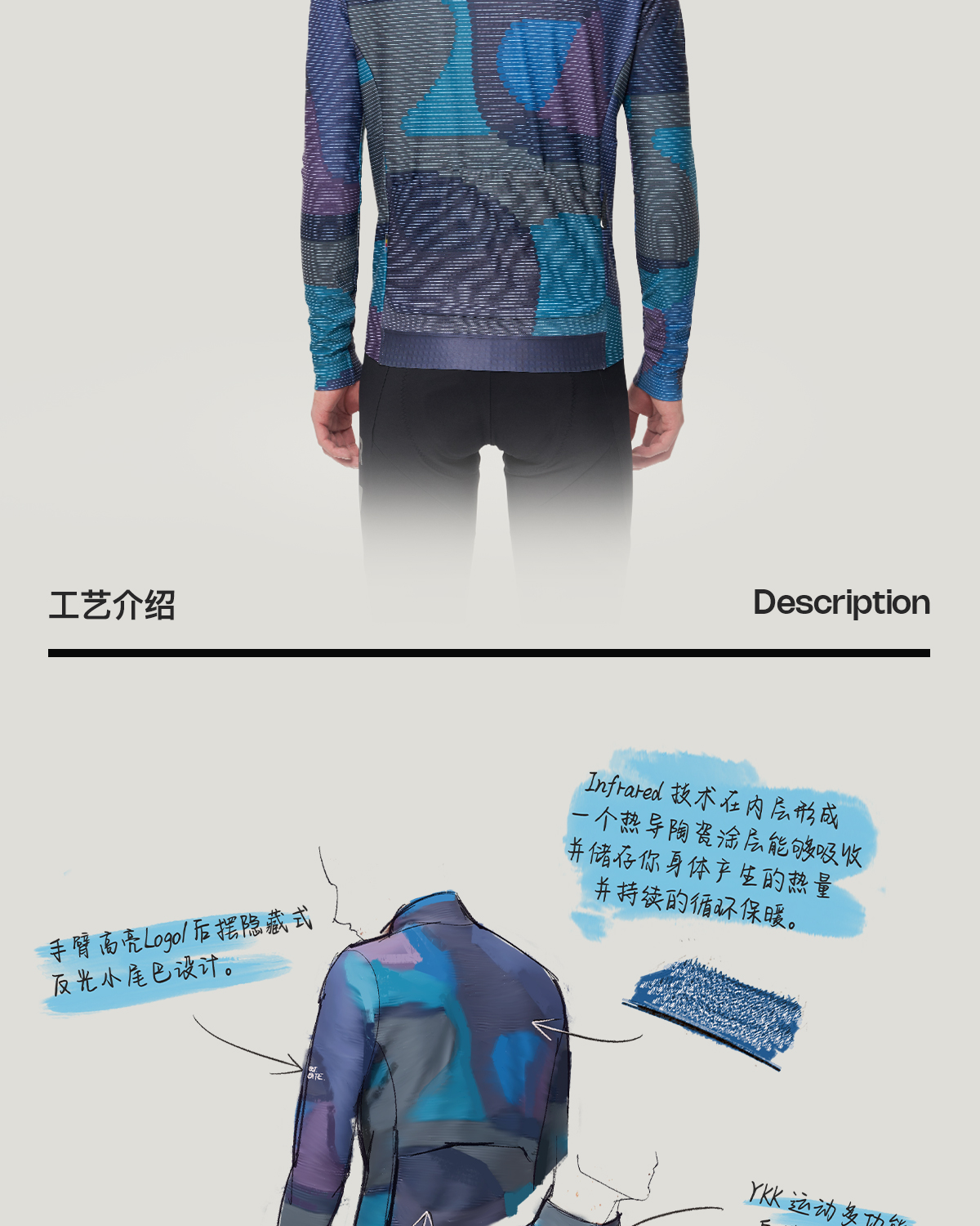 GRC桀骜无尽秋冬新款CMYK律动幻波长袖上衣保暖公路自行车骑行男