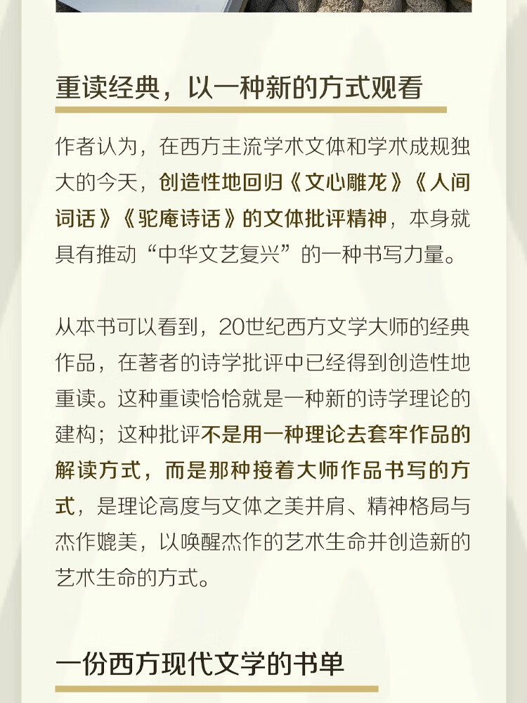 本书收录的文章是作者应著名文学杂志《花城》之邀,在该刊开设的“世纪经典”专栏发表的系列文论。这些文章贯穿着“批评即创作”的诗学理念,即以中国传统诗学方法与西方现代诗学方法相结合的、宏阔的诗学视野,讨论了包括弗兰茨•卡夫卡、阿尔伯特•加缪、马塞尔•普鲁斯特、加西亚•马尔克斯、巴尔加斯•略萨、罗兰•巴特、华莱士•史蒂文斯、勒内•里尔克、罗伯特•弗罗斯特、巴勃罗•聂鲁达等人物在内的文学大师的经典作品。在文体上,一方面,极力倡导对中华传统文论诗性书写方式的回归;另一方面极力倡导诗意书写的诗话文风,以超越学报式的论文写作模式,实践理论与创作并立而会通的书写途径,使艰深的学理变得富有诗意,亲切可读。作者认为,在西方主流学术文体和学术成规独大的今天,创造性地回归《文心雕龙》《人间词话》《驼庵诗话》的文体批评精神,本身就具有推动“中华文艺复兴”的一种书写力量。从本书可以看到,20世纪西方文学大师的经典作品,在著者的诗学批评中已经得到创造性地重读,这种重读恰恰就是一种新的诗学理论的建构;这种批评不是用一种理论去套牢作品的解读方式,而是那种接着大师作品书写的方式,是理论高度与文体之美并肩、精神格局与杰作媲美,以唤醒杰作的艺术生命并创造新的艺术生命的方式。因此,这种批评与创作并肩而立的创造性诗学解读,是中国当代文艺批评值得肯定的新范式,是中国传统诗话与当代理论结合的播扬文化道路自信的有效探索方式,对中国当代文艺批评与创作有着重要的现实意义。