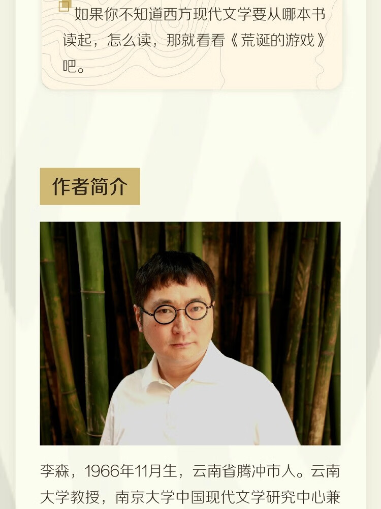 李森,1966年11月生,云南省腾冲市人。云南大学教授,南京大学中国现代文学研究中心兼职教授,博士生导师,云南大学中国当代文艺研究所所长,教育部艺术学理论本科教指委委员,“中华文艺复兴论坛”主席,云南省中青年学术技术带头人,“他们”诗派成员,“语言漂移说”艺术哲学理论创始人。在国内外出版学术专著和作品集20部,发论文和文学作品400余篇,代表作有长诗《明光河》等。