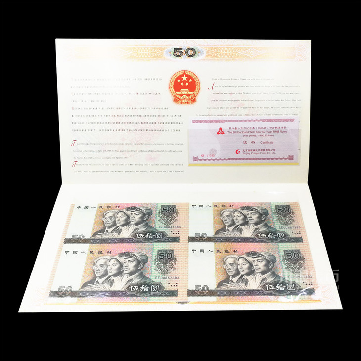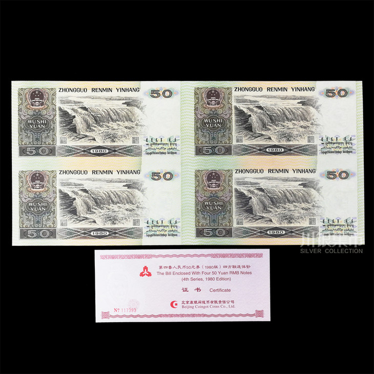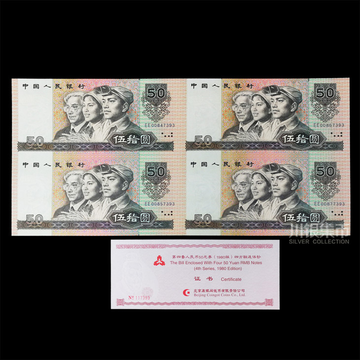 第四版人民币 50元劵90版、80版四连体钞