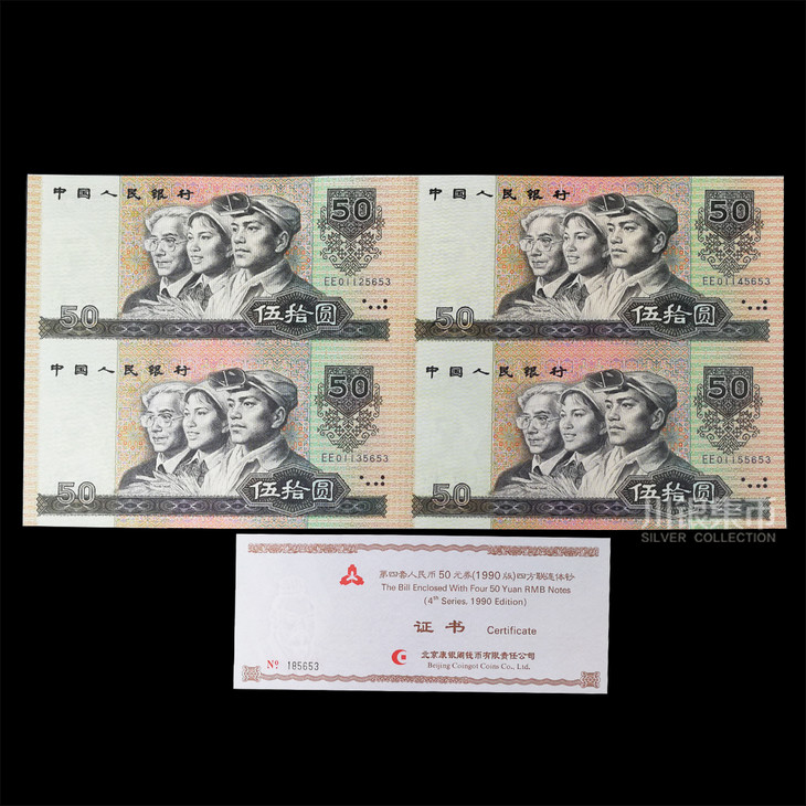 90版50元四连体:2000年发行,发行量20万