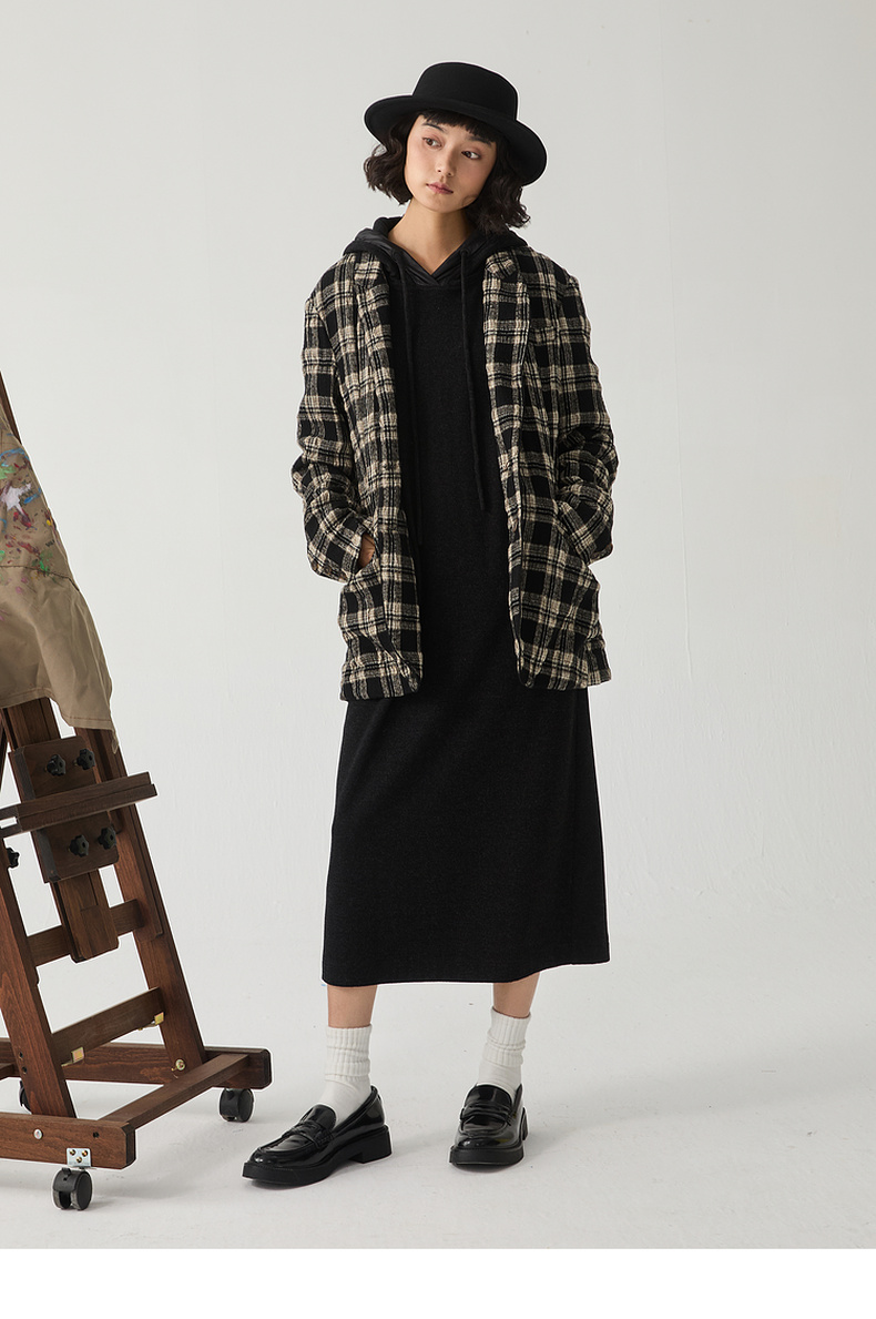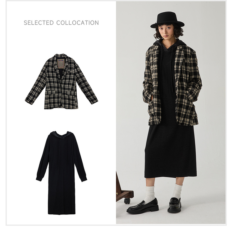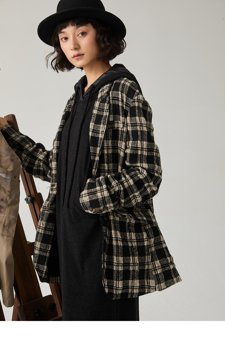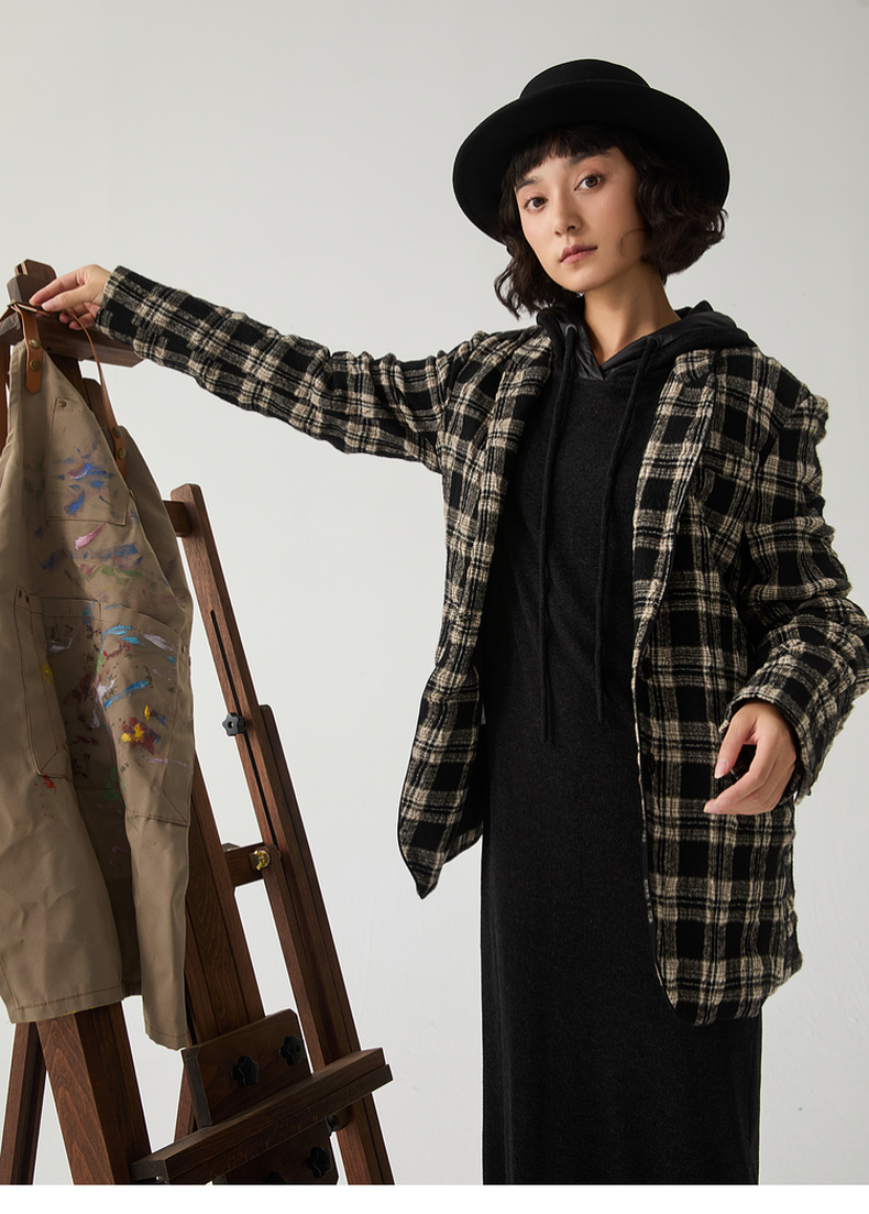 谜底西装呢子大衣女2024冬季新品简洁利落宽松西服外套244GD1653