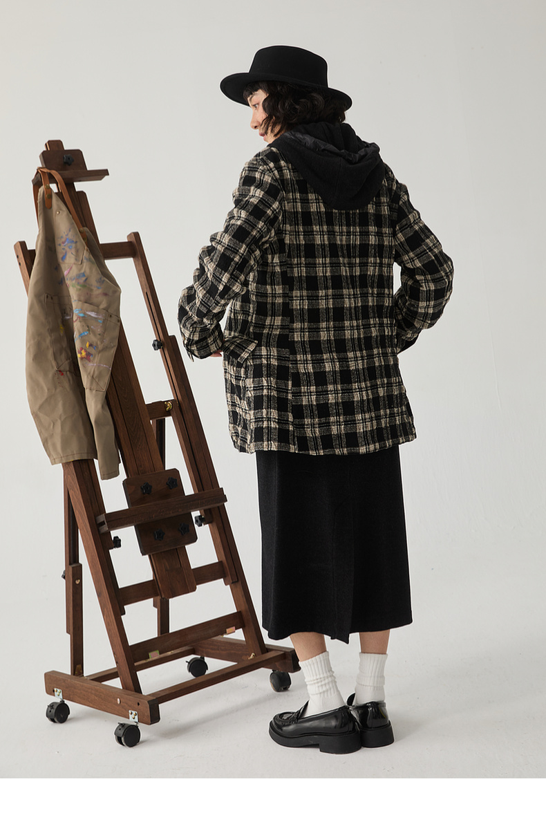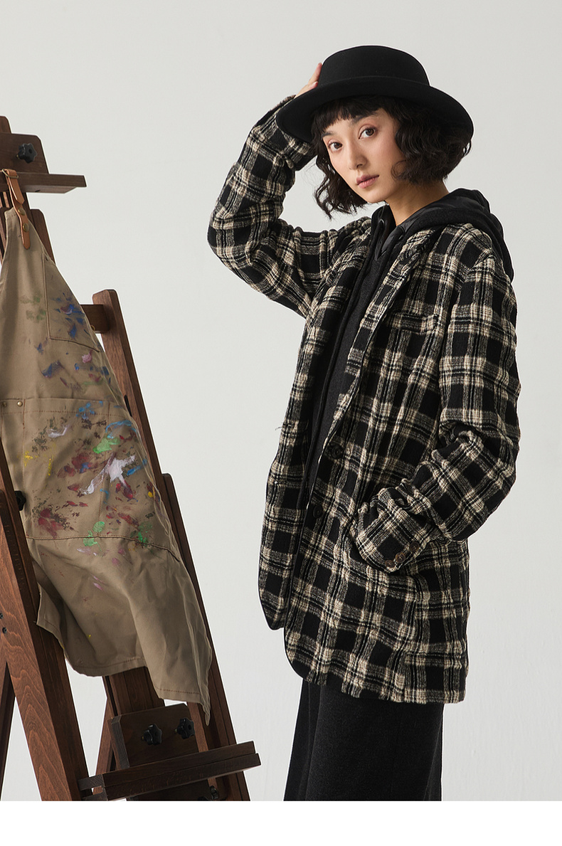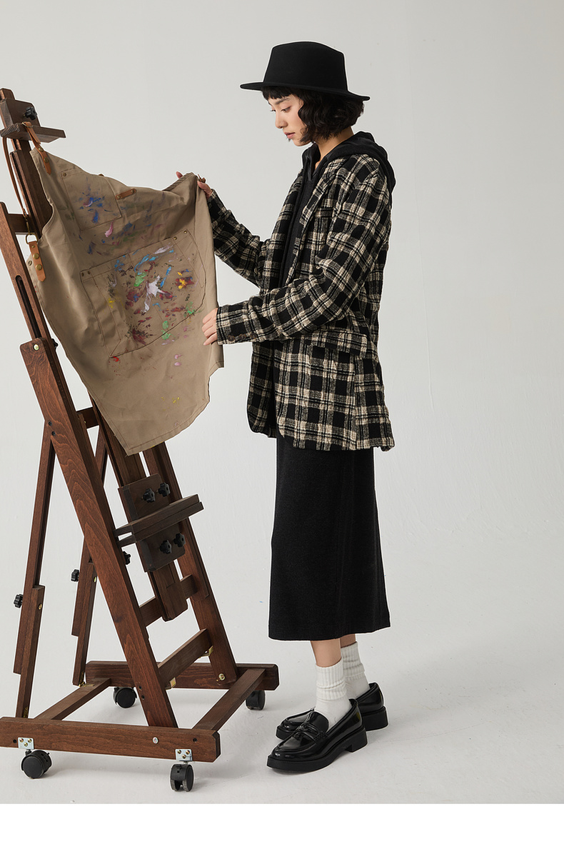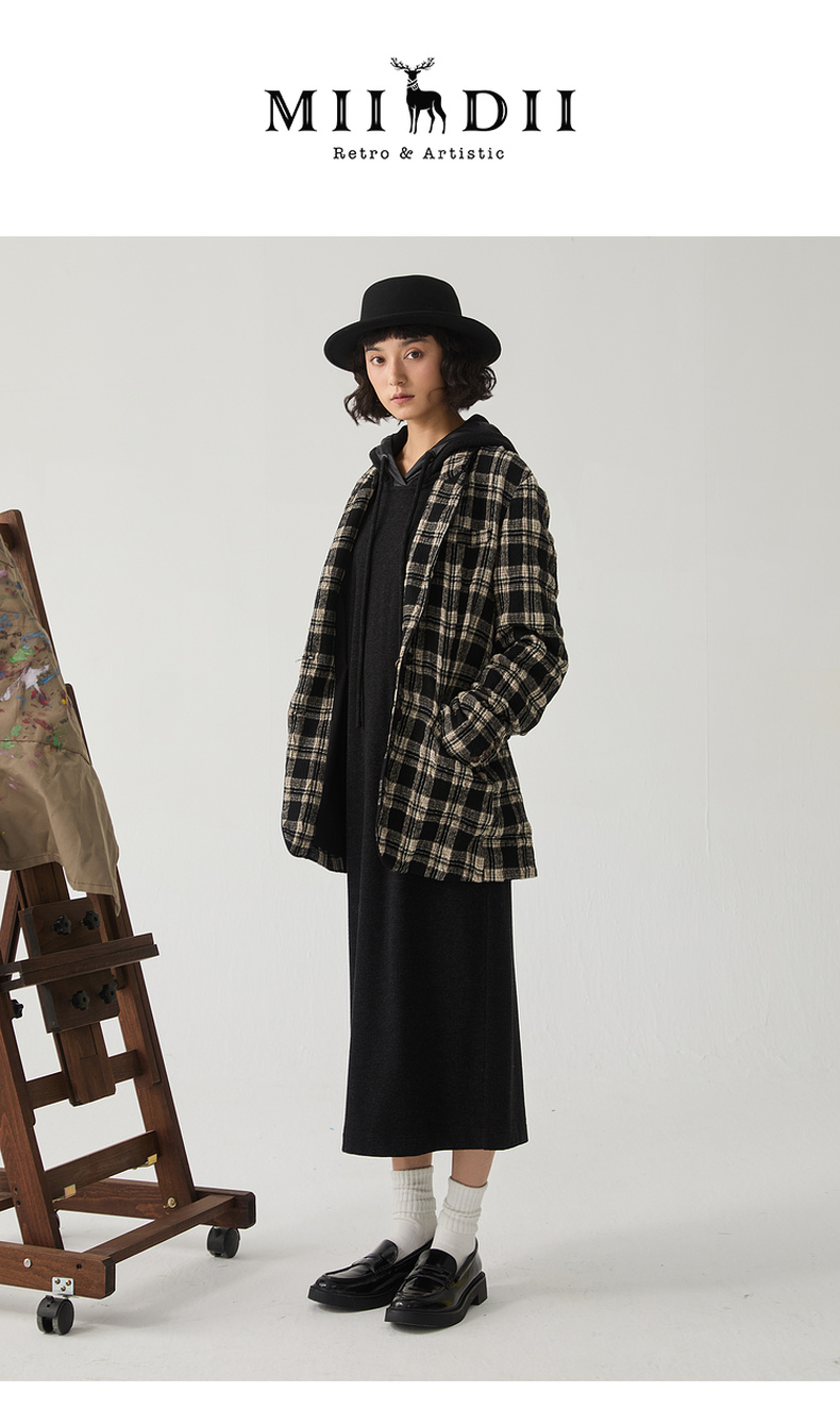 谜底西装呢子大衣女2024冬季新品简洁利落宽松西服外套244GD1653