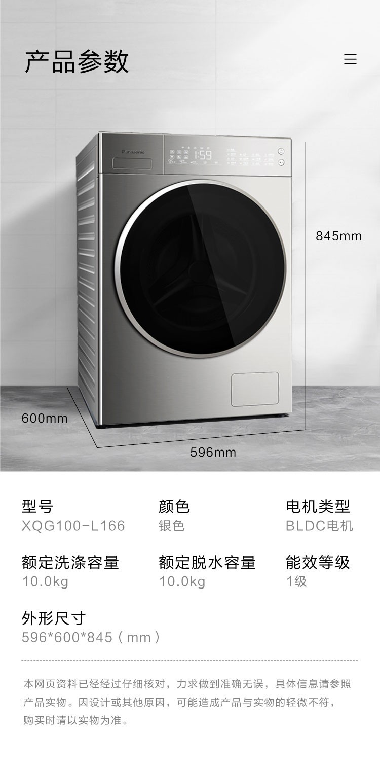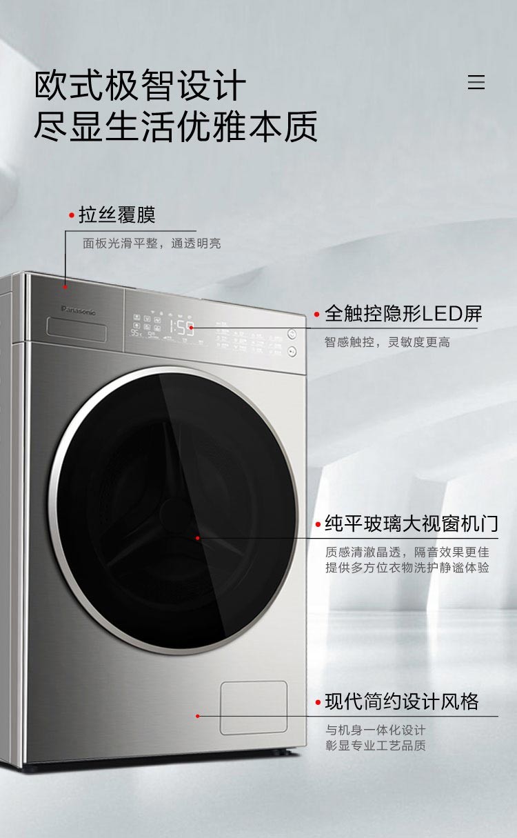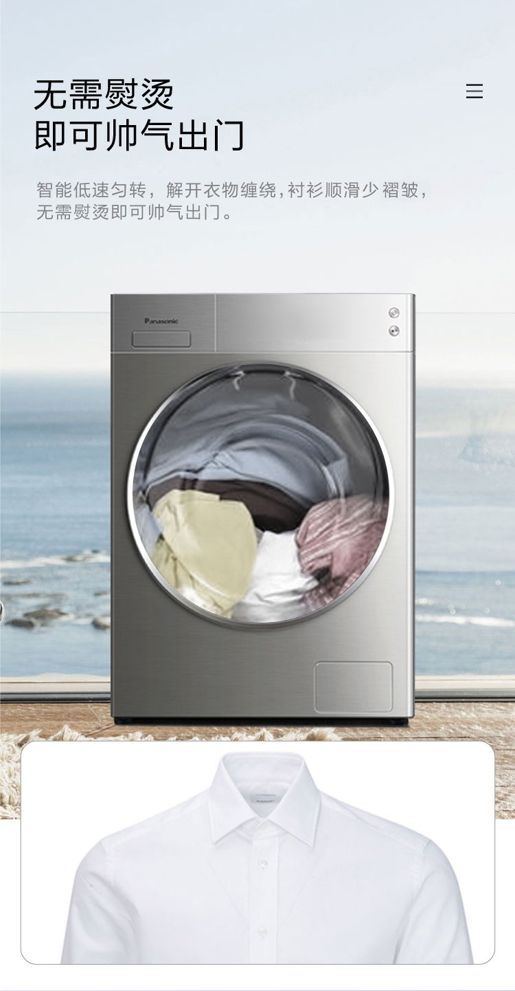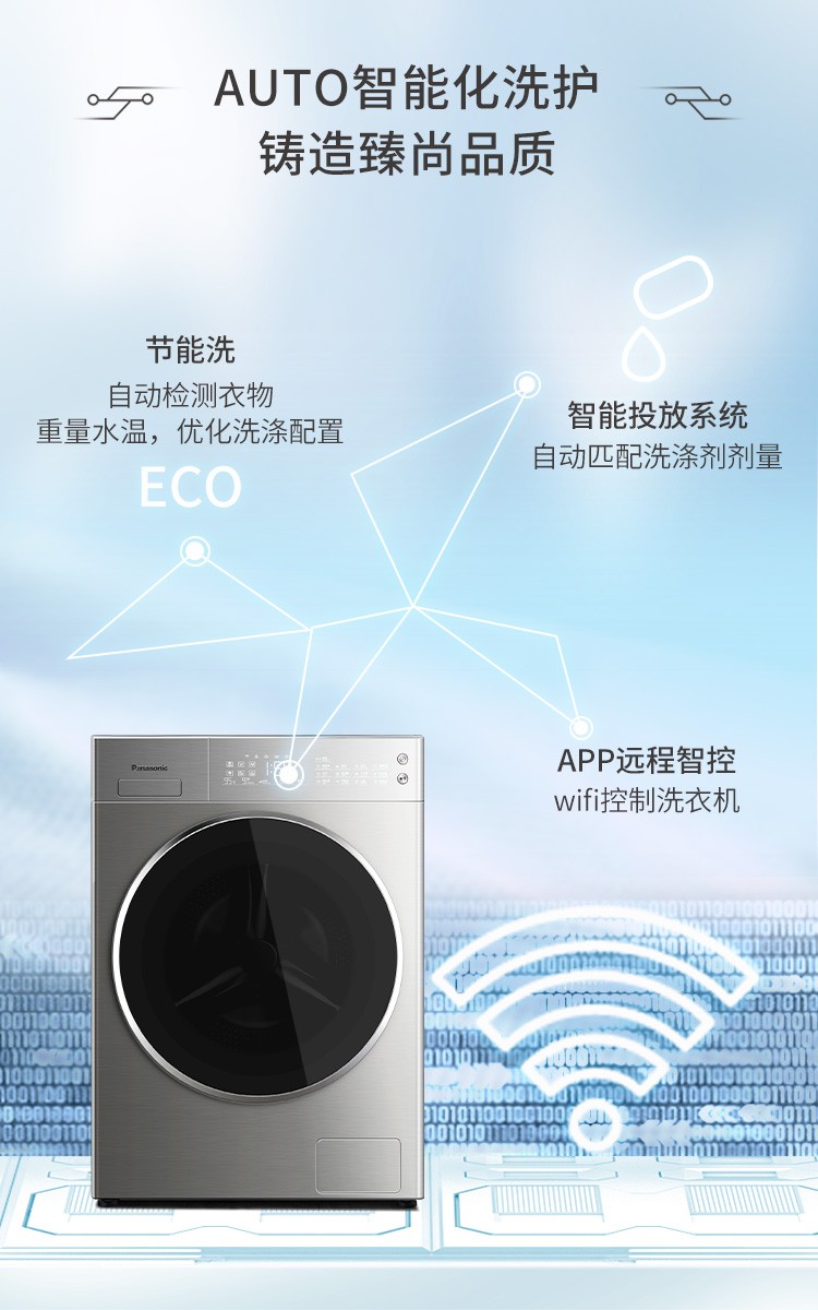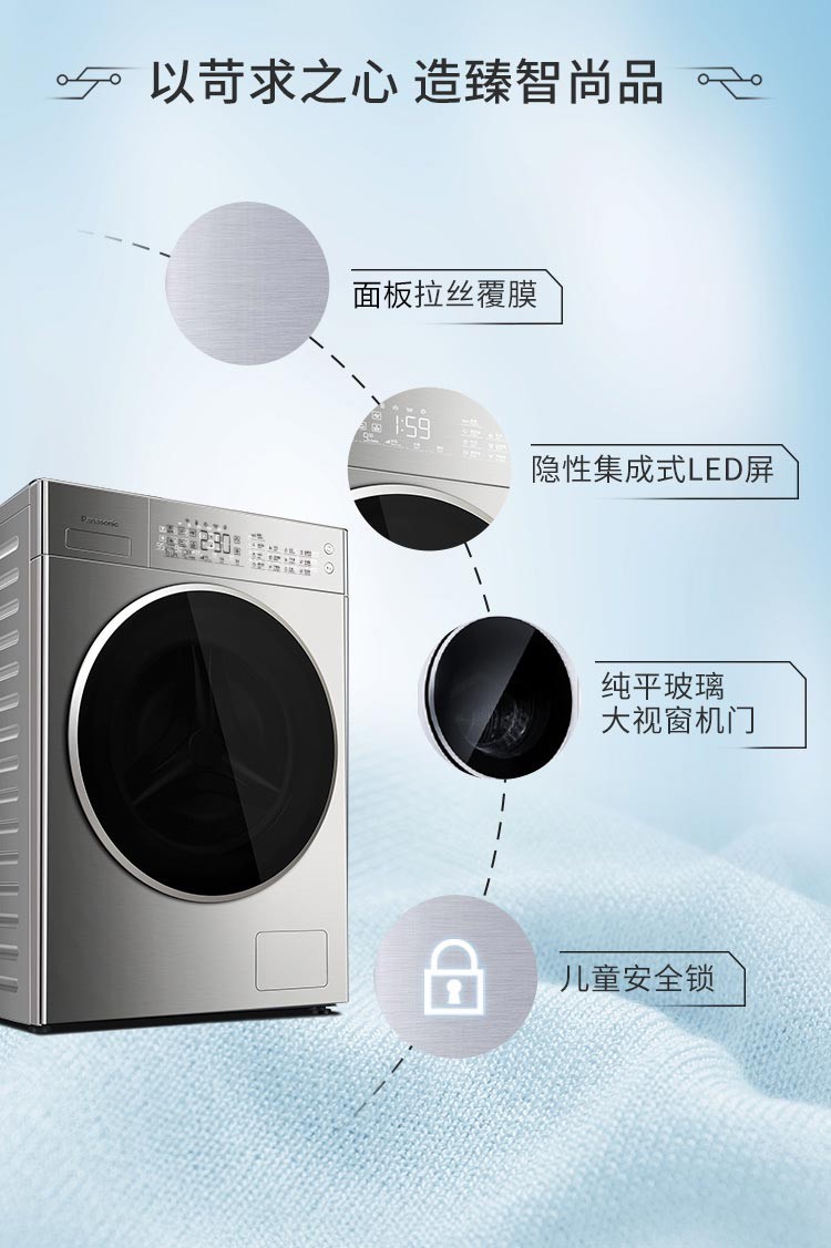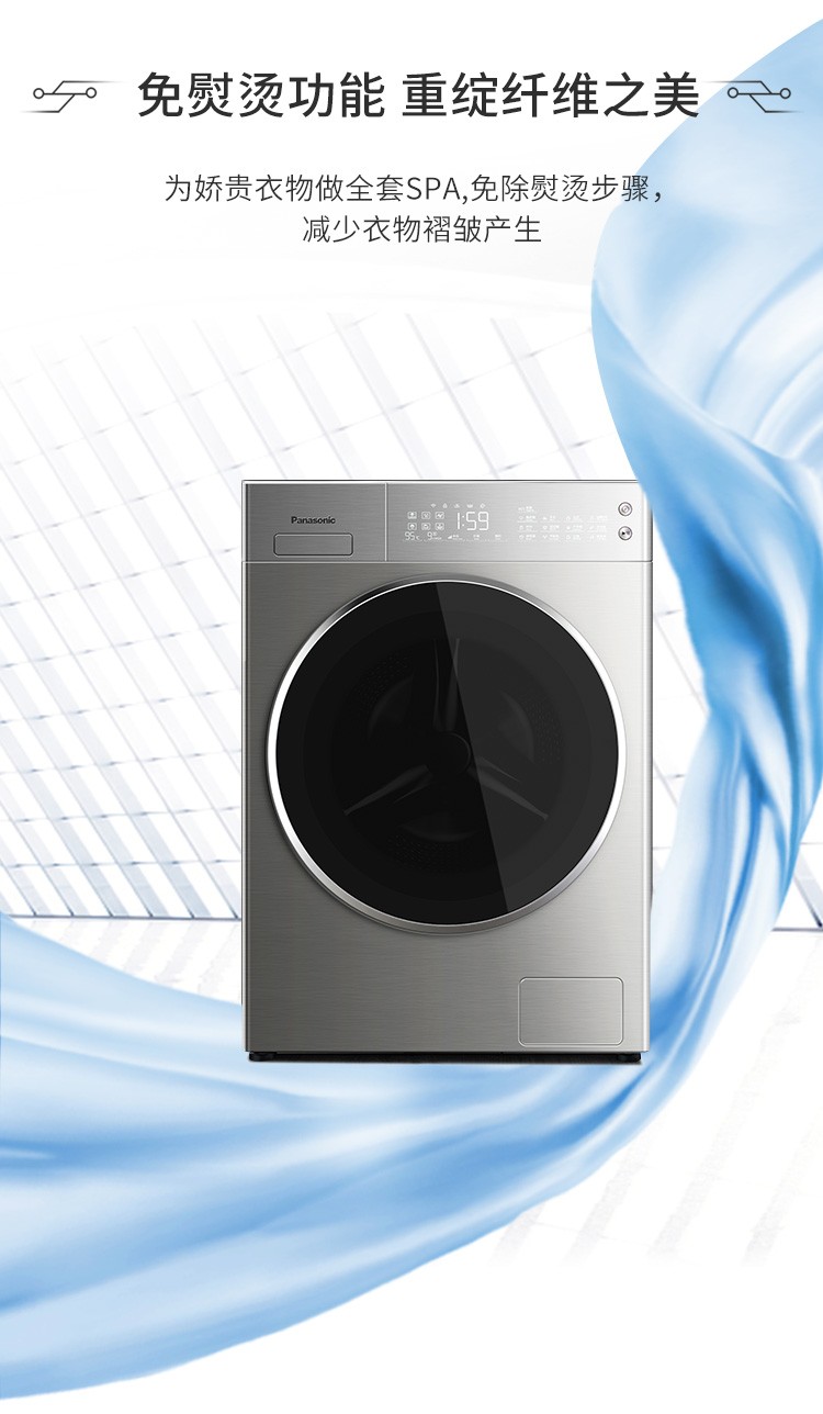松下(Panasonic)全自动滚筒洗衣机10公斤变频节能除菌 WIFI智能控制 泡沫净深层去渍