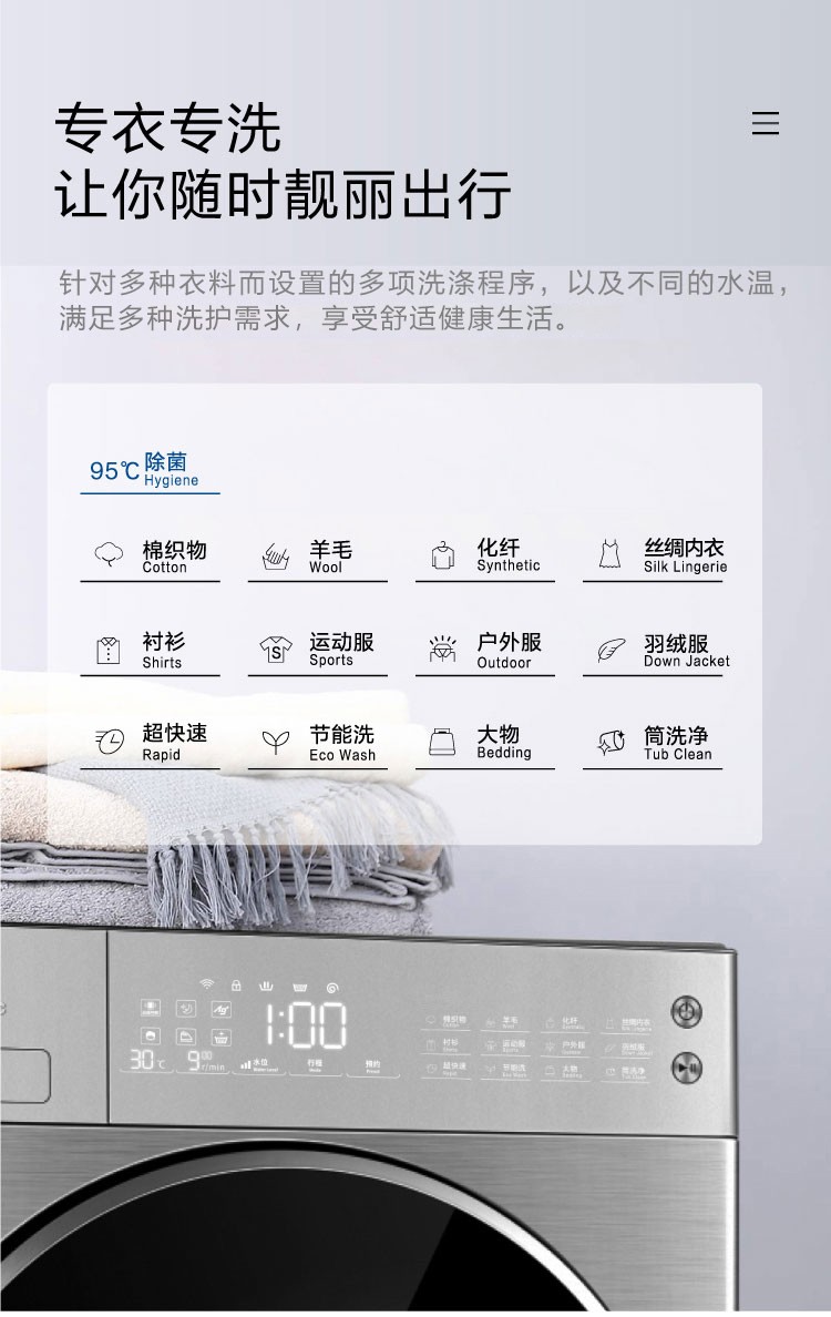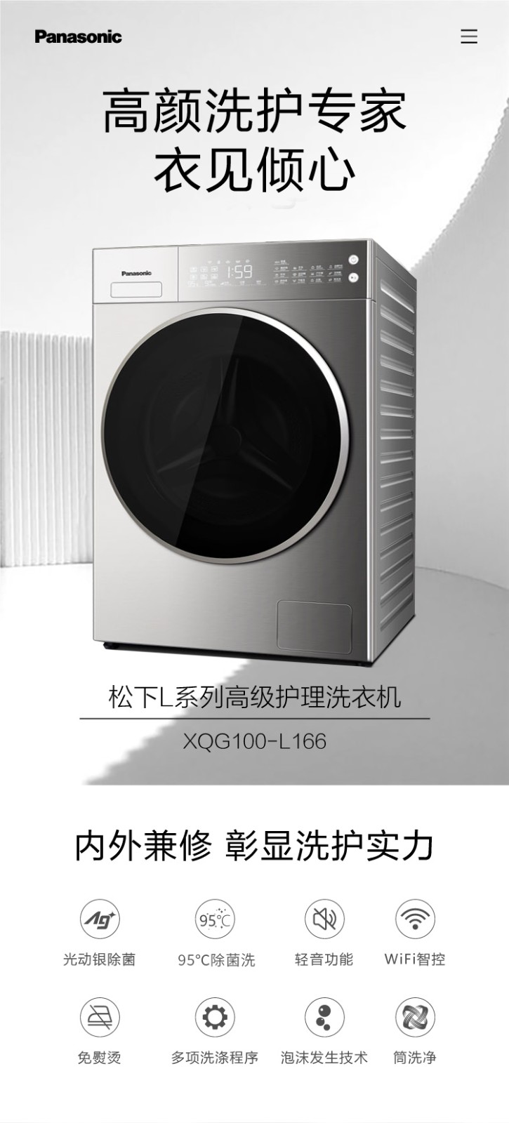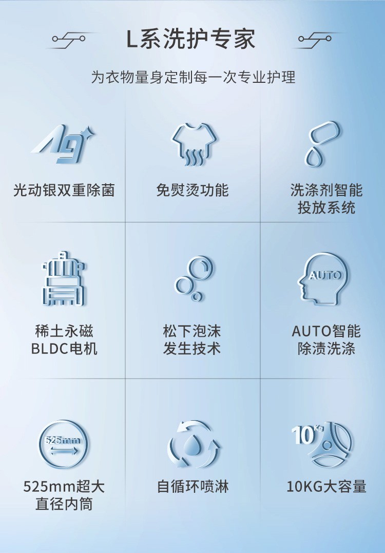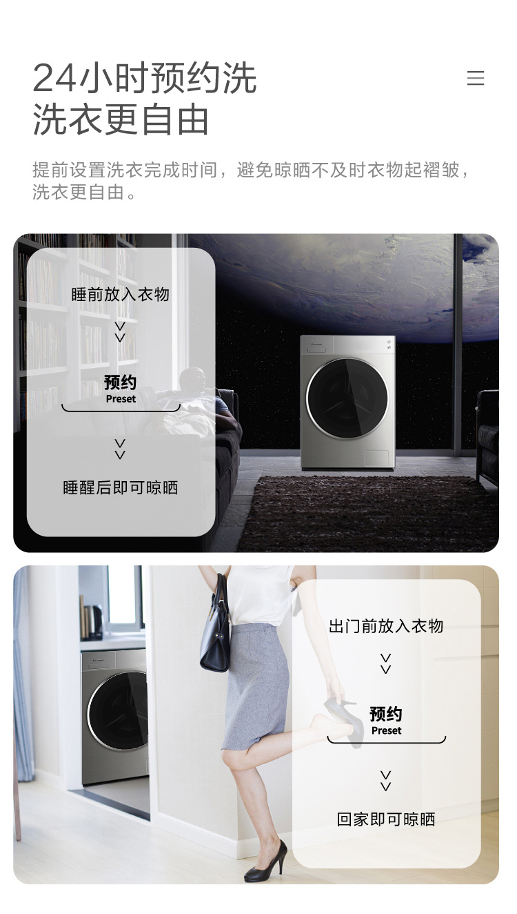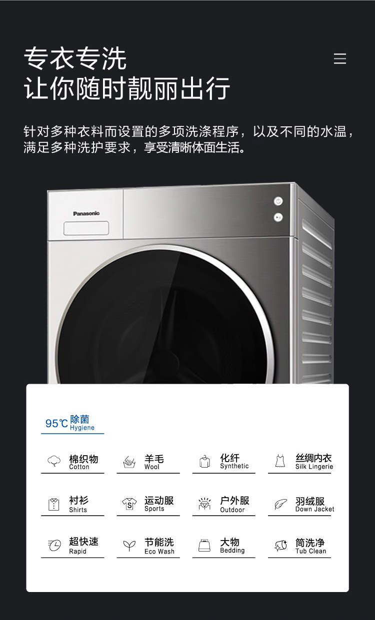 松下(Panasonic)全自动滚筒洗衣机10公斤变频节能除菌 WIFI智能控制 泡沫净深层去渍