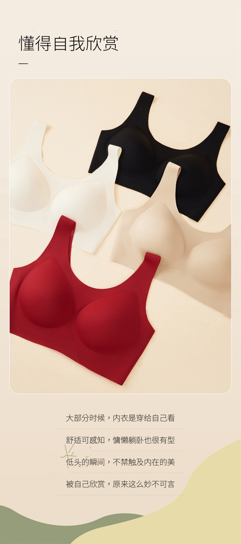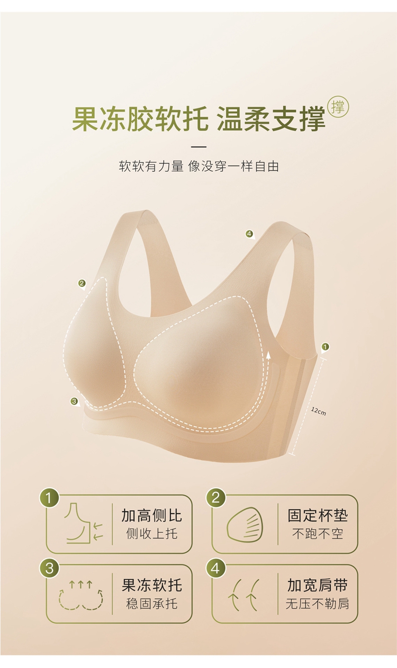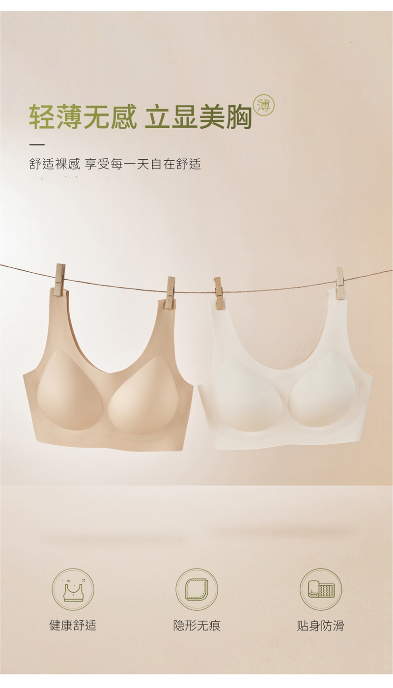 舒适无痕健康抑菌大胸显小背心文胸