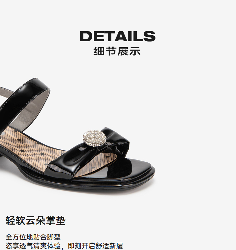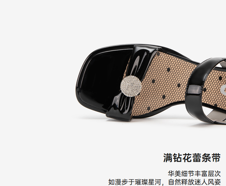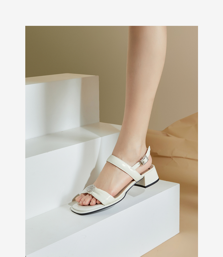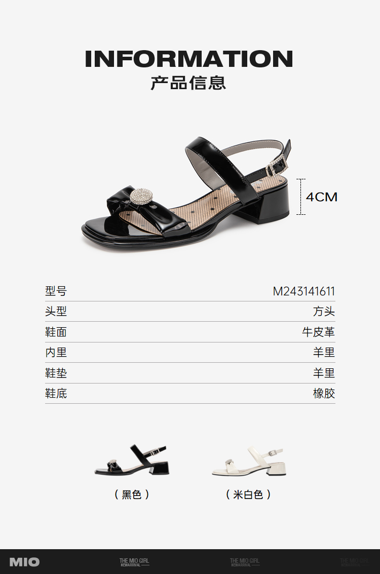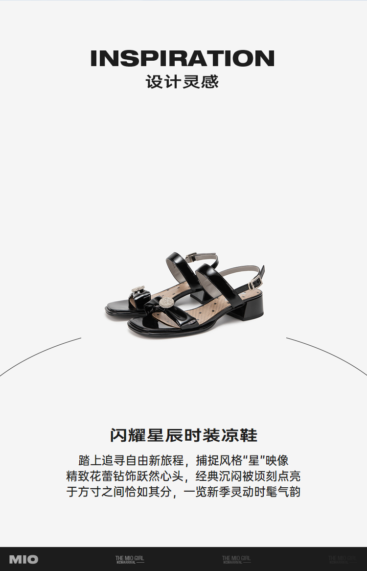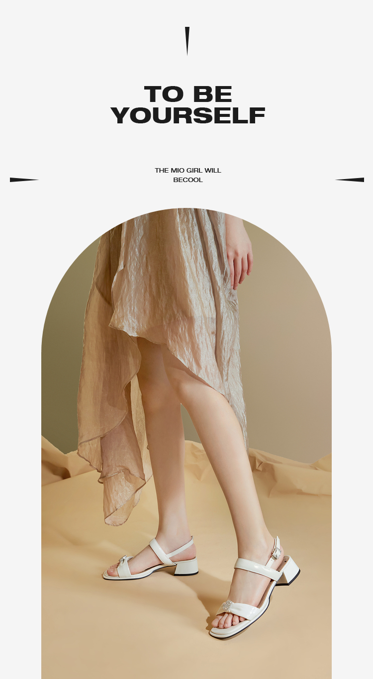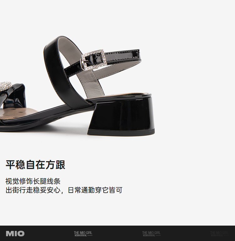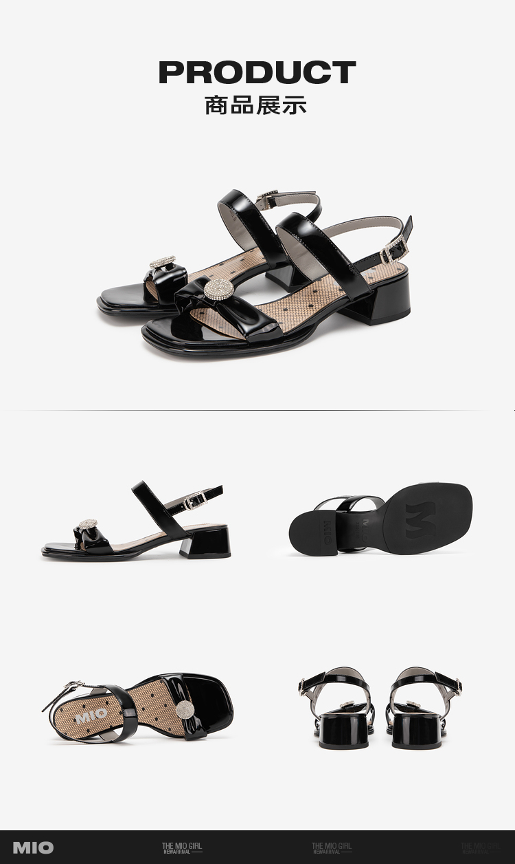 MIO米奥夏季方头中跟一字带时装凉鞋法式简约轻软舒适凉鞋M243141611