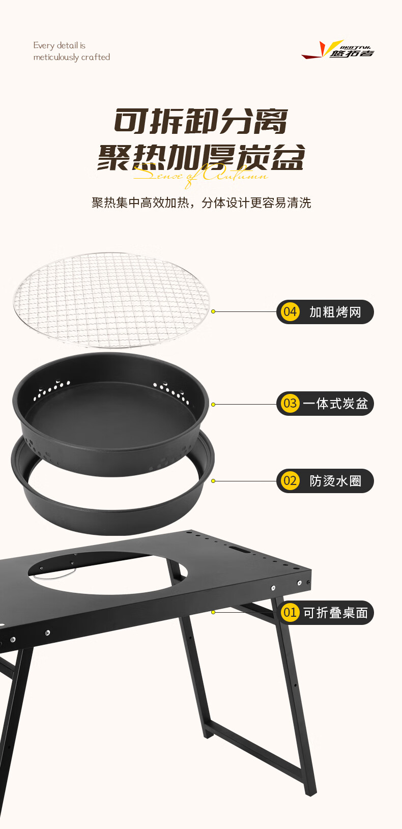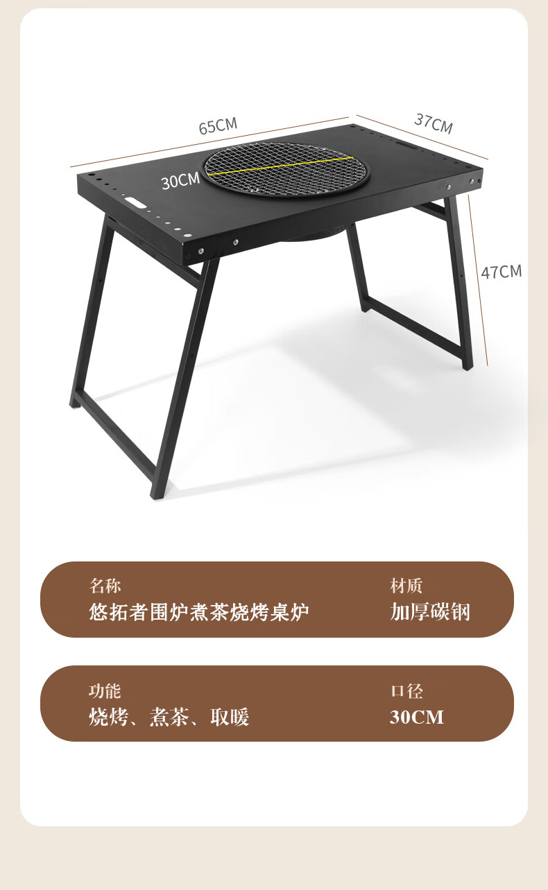 【精选】悠拓者碳钢防锈围炉烧烤桌炉