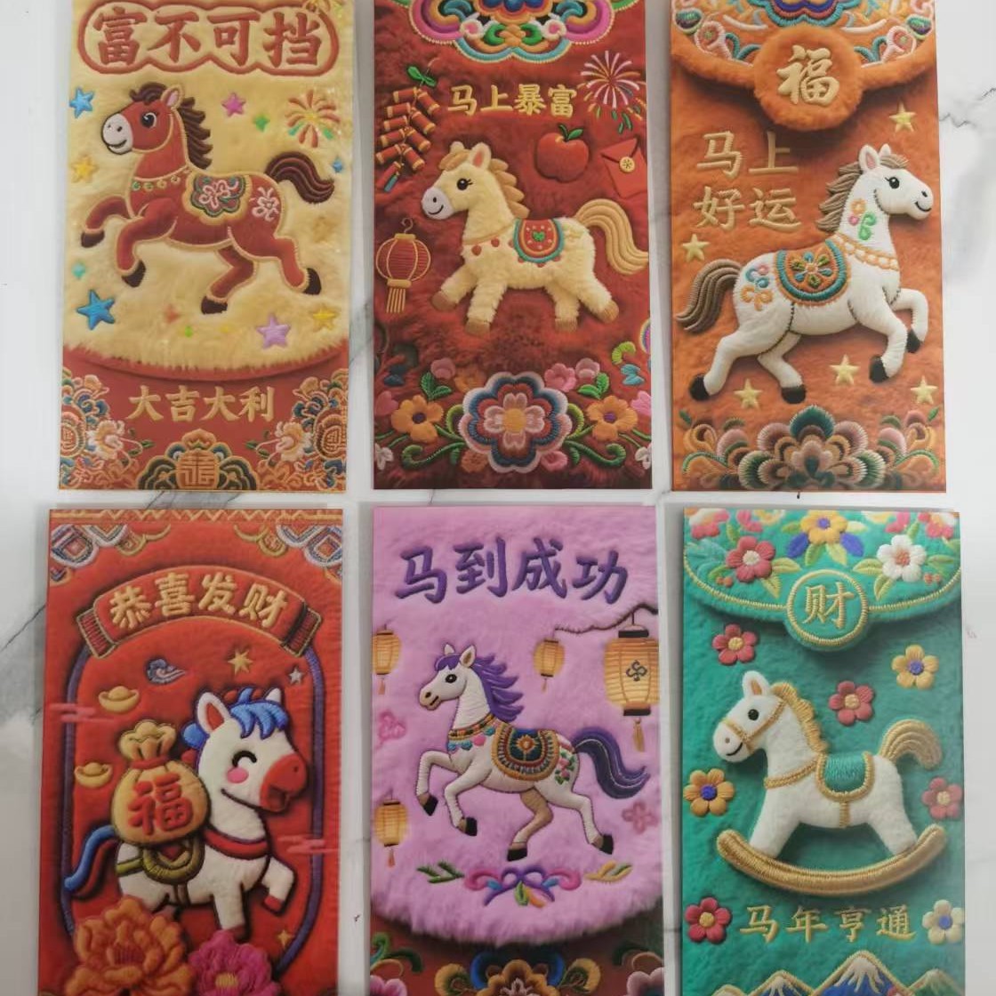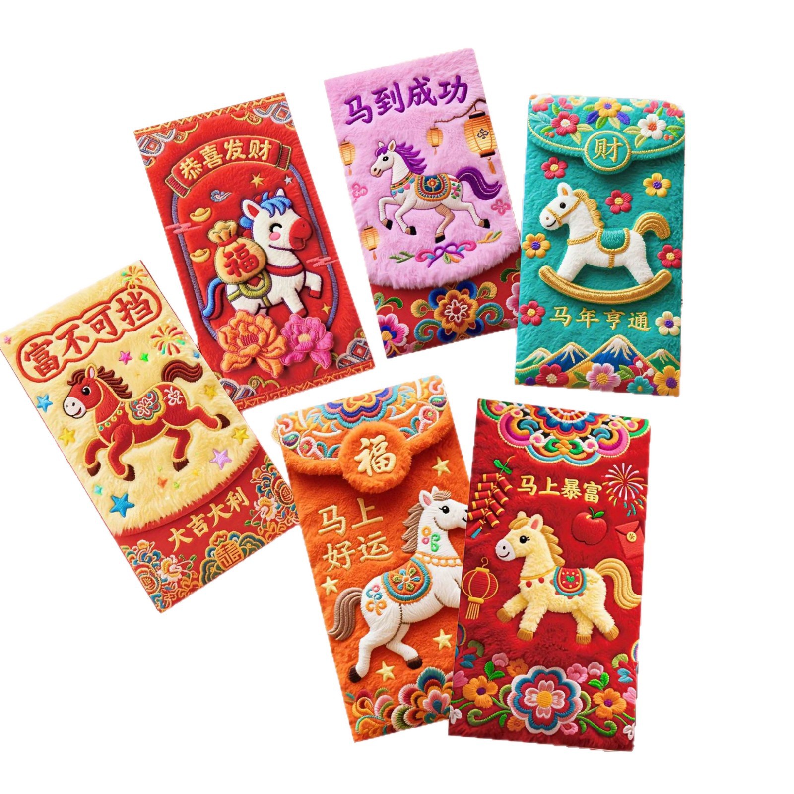 红包马年刺绣红包创意新年利是封包刺绣小马红包5D立体压岁包厂家
