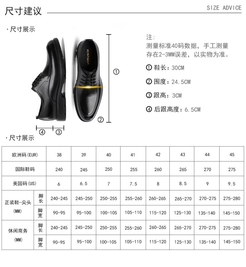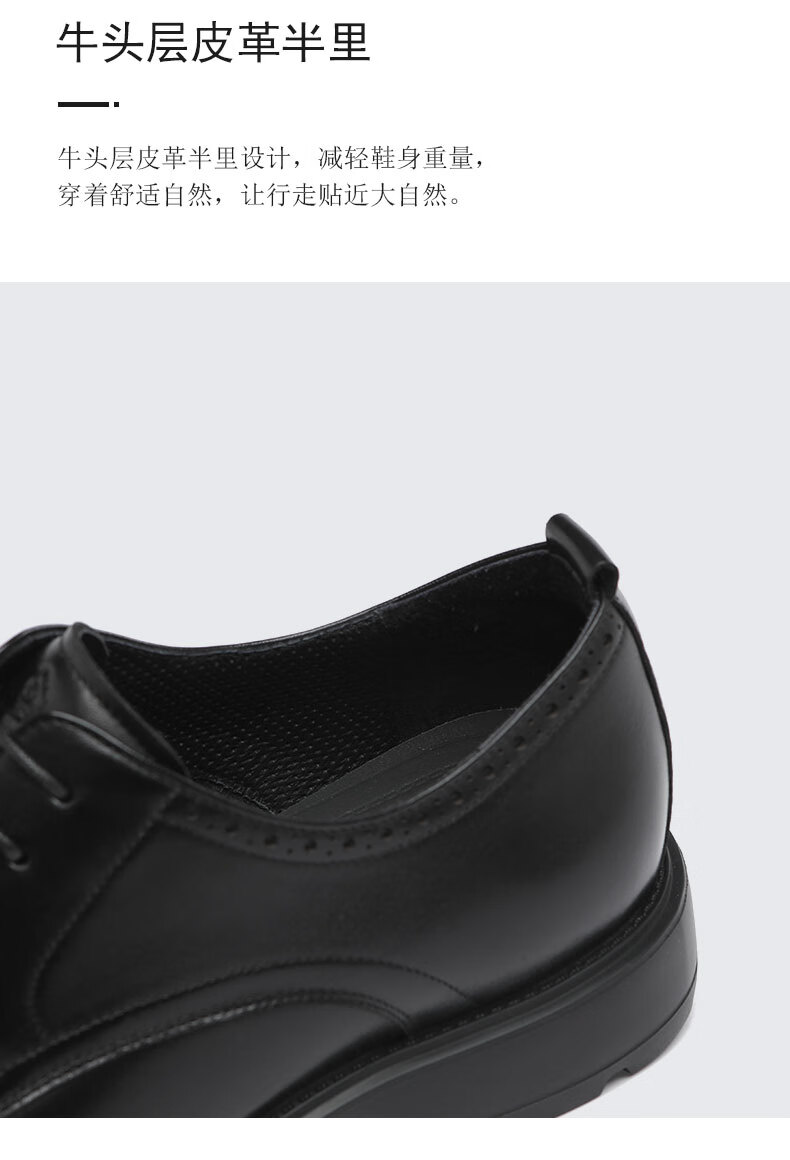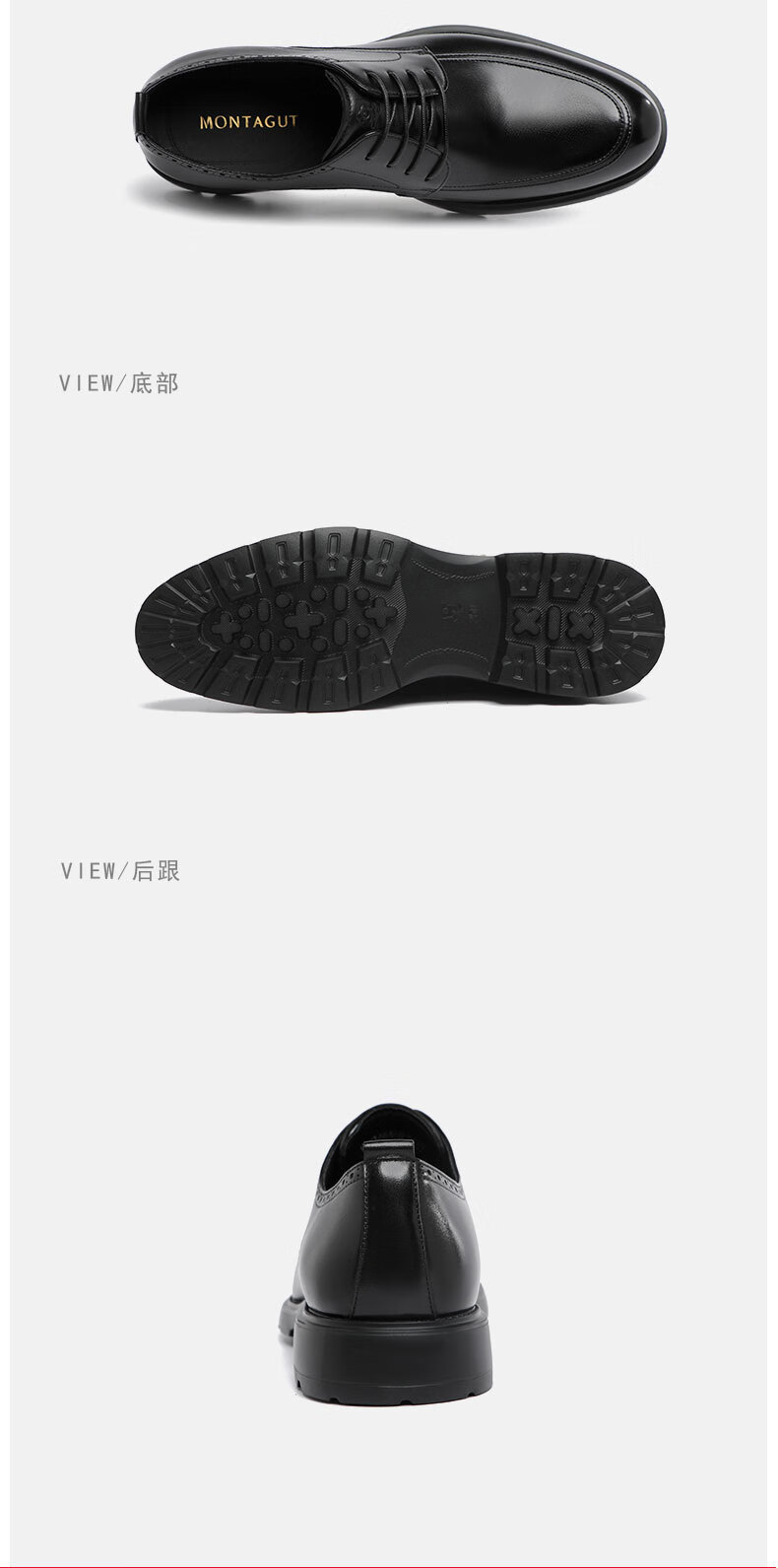梦特娇男鞋新款商务系带正装皮鞋男真皮德比鞋上班结婚新郎鞋 黑色 38