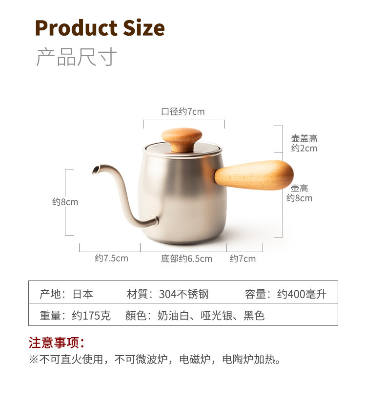 宫崎制作所Miyacoffee日本进口304不锈钢细嘴咖啡手冲壶咖啡壶 【不支持补差,非质量问题不退不换】S