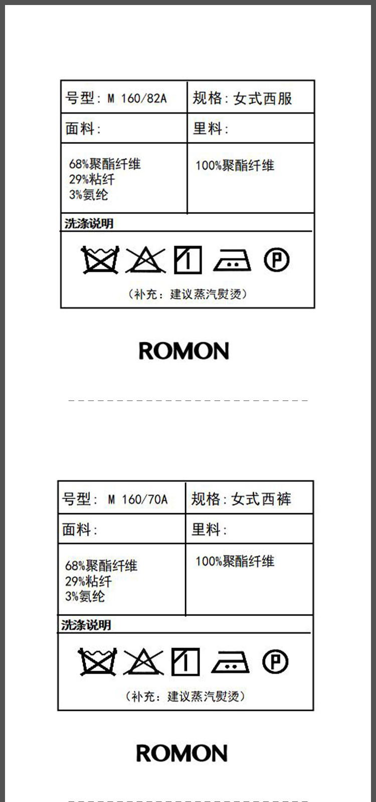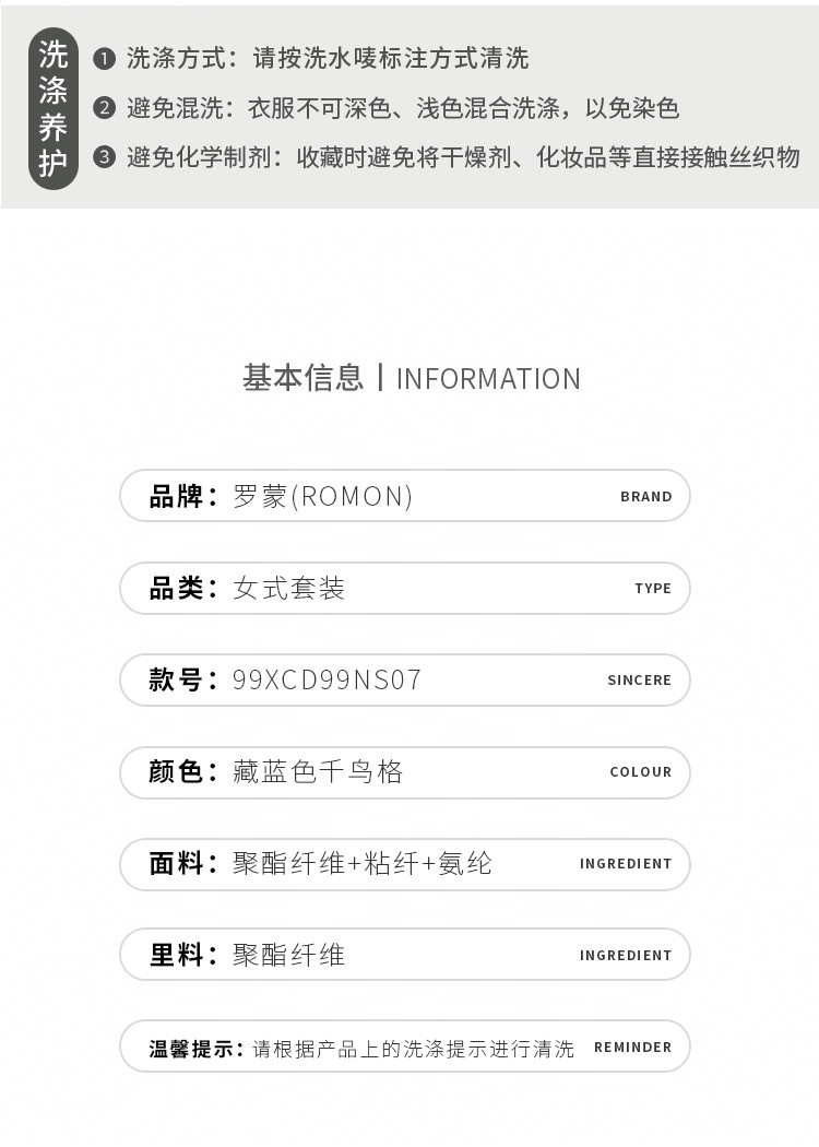 面料:68%聚酯纤维29%粘纤3%氨纶里料:100%聚酯纤维