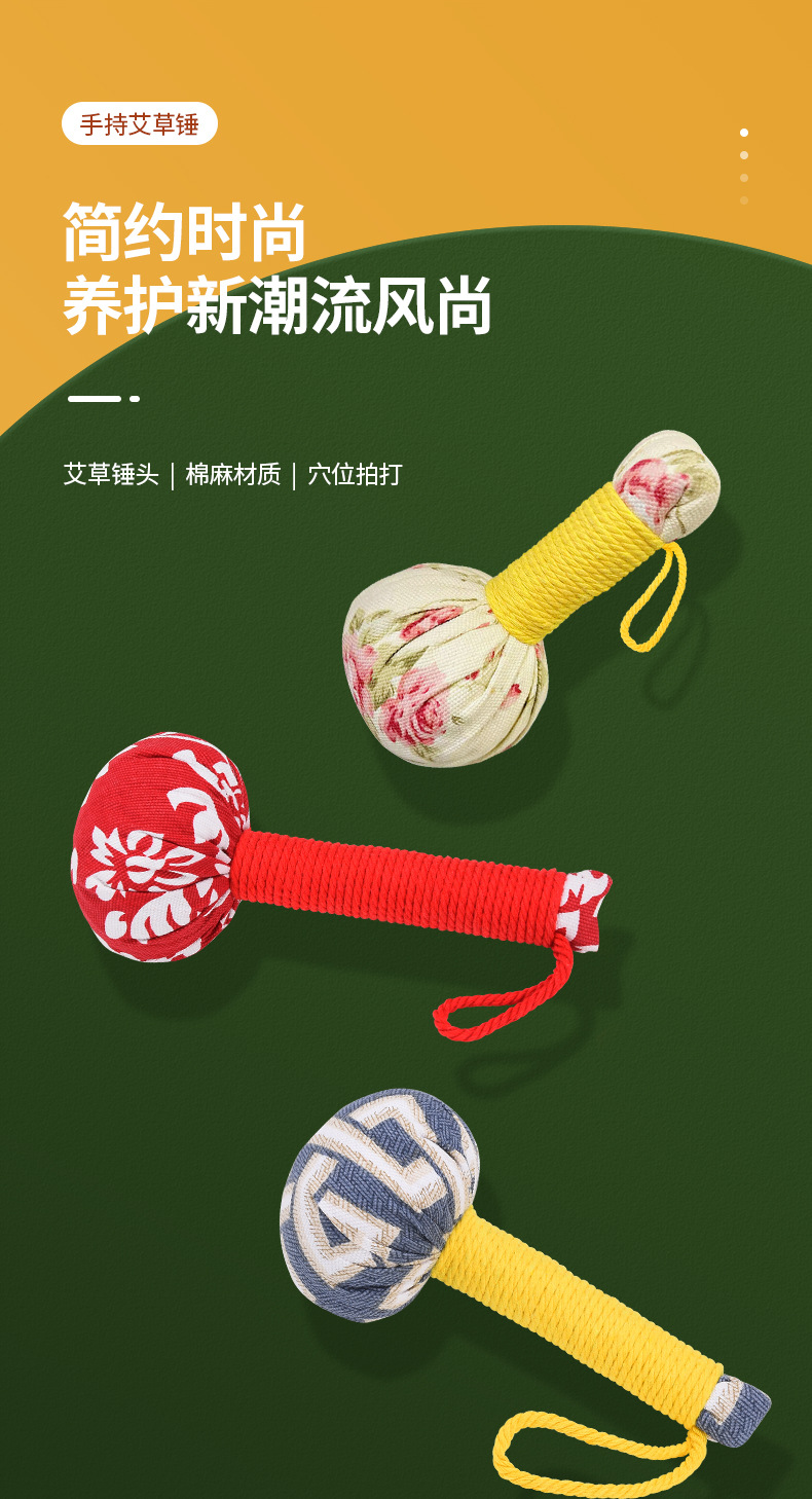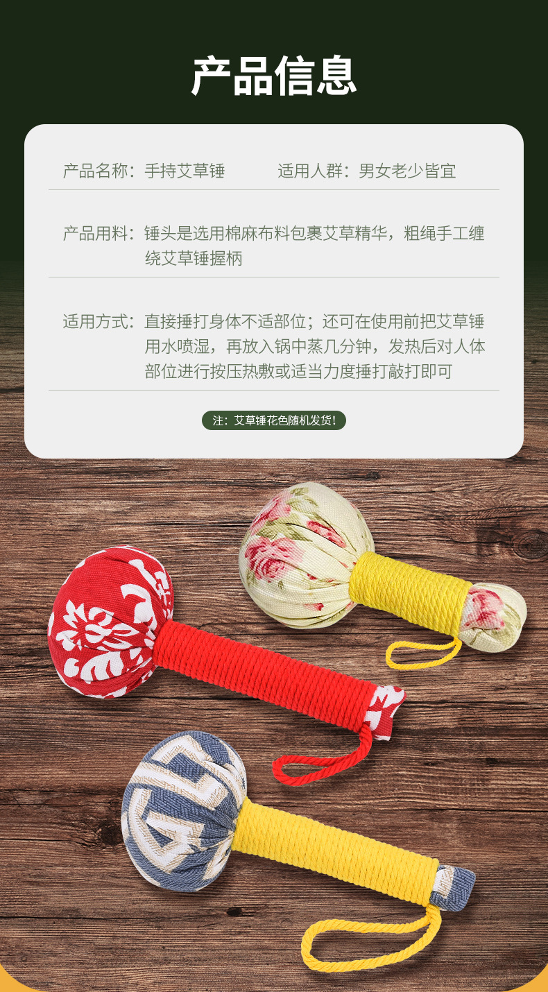 艾草养生锤端午节手持艾草锤diy背部颈椎经络按摩锤手工穴位拍打艾灸锤