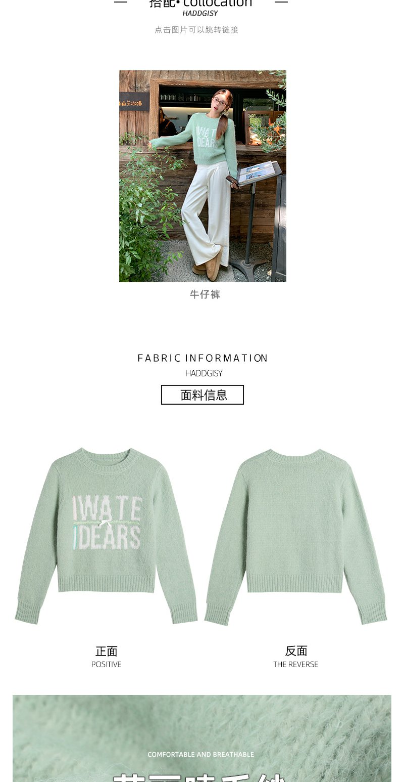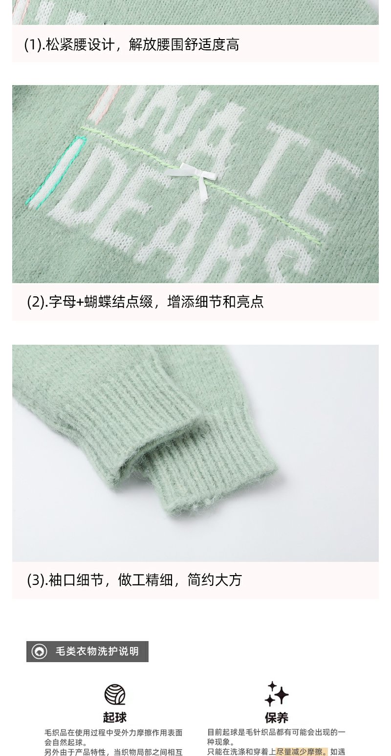 【179元任选2件】最后一波现货!绿色字母短款加厚保暖毛衣