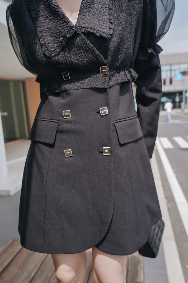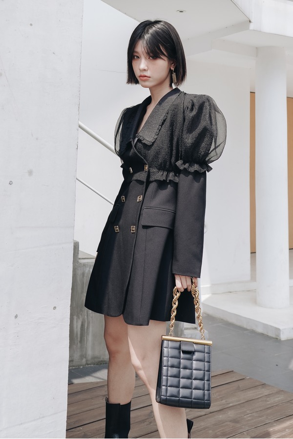 ANSUABEL 设计感小众欧根纱拼接西装连衣裙 14134