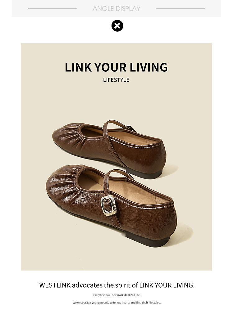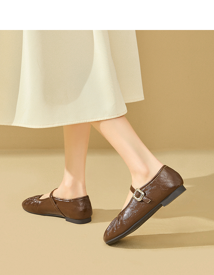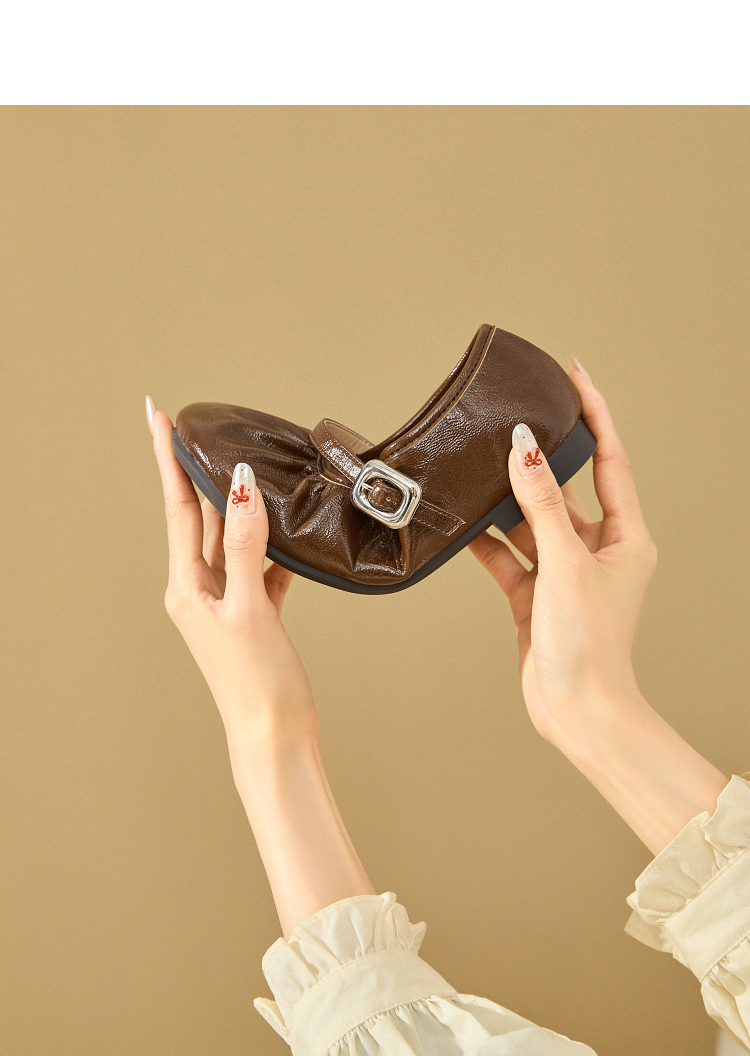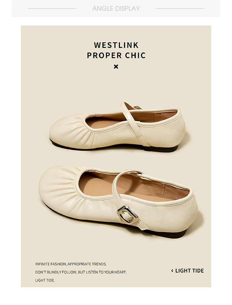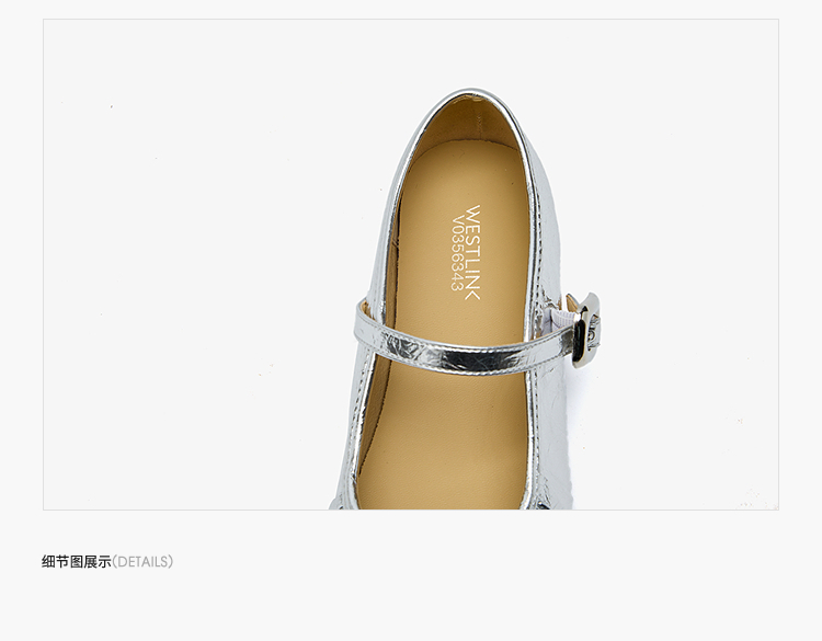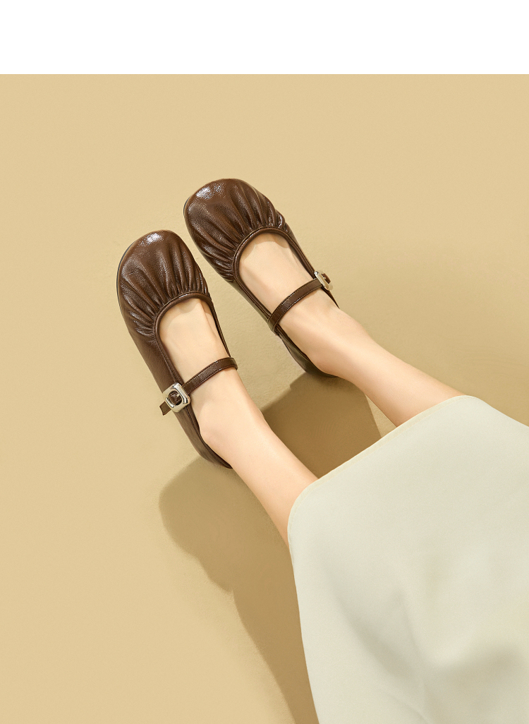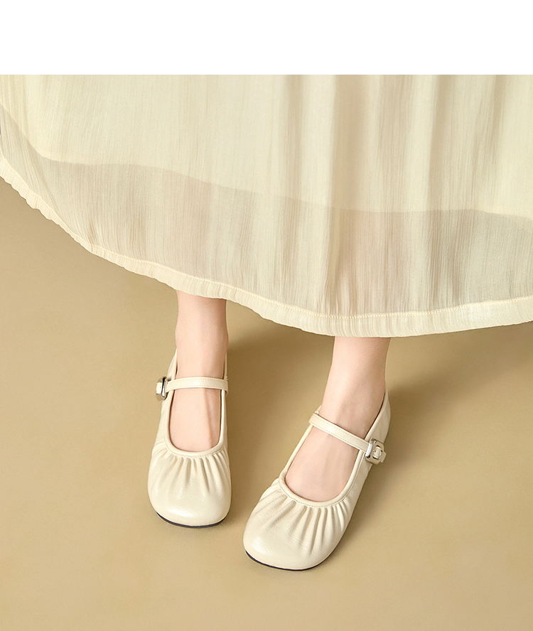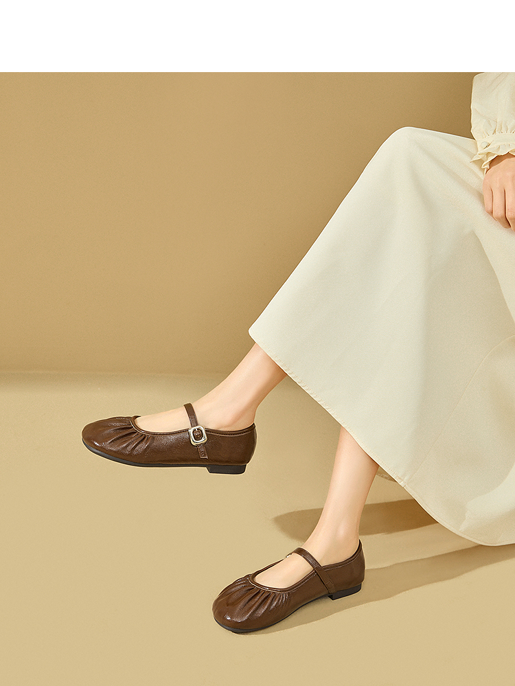 西遇法式单鞋女新款褶皱超软通勤圆头平底鞋银色玛丽珍鞋V0356343
