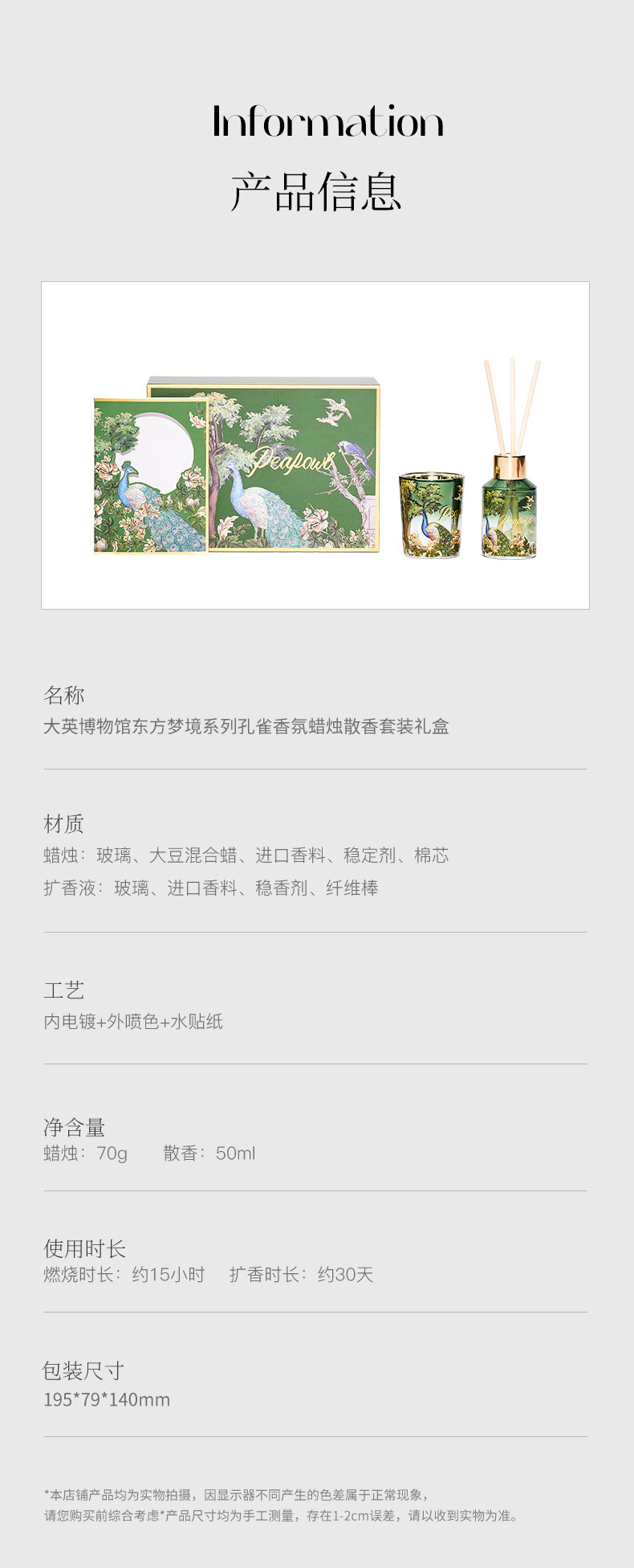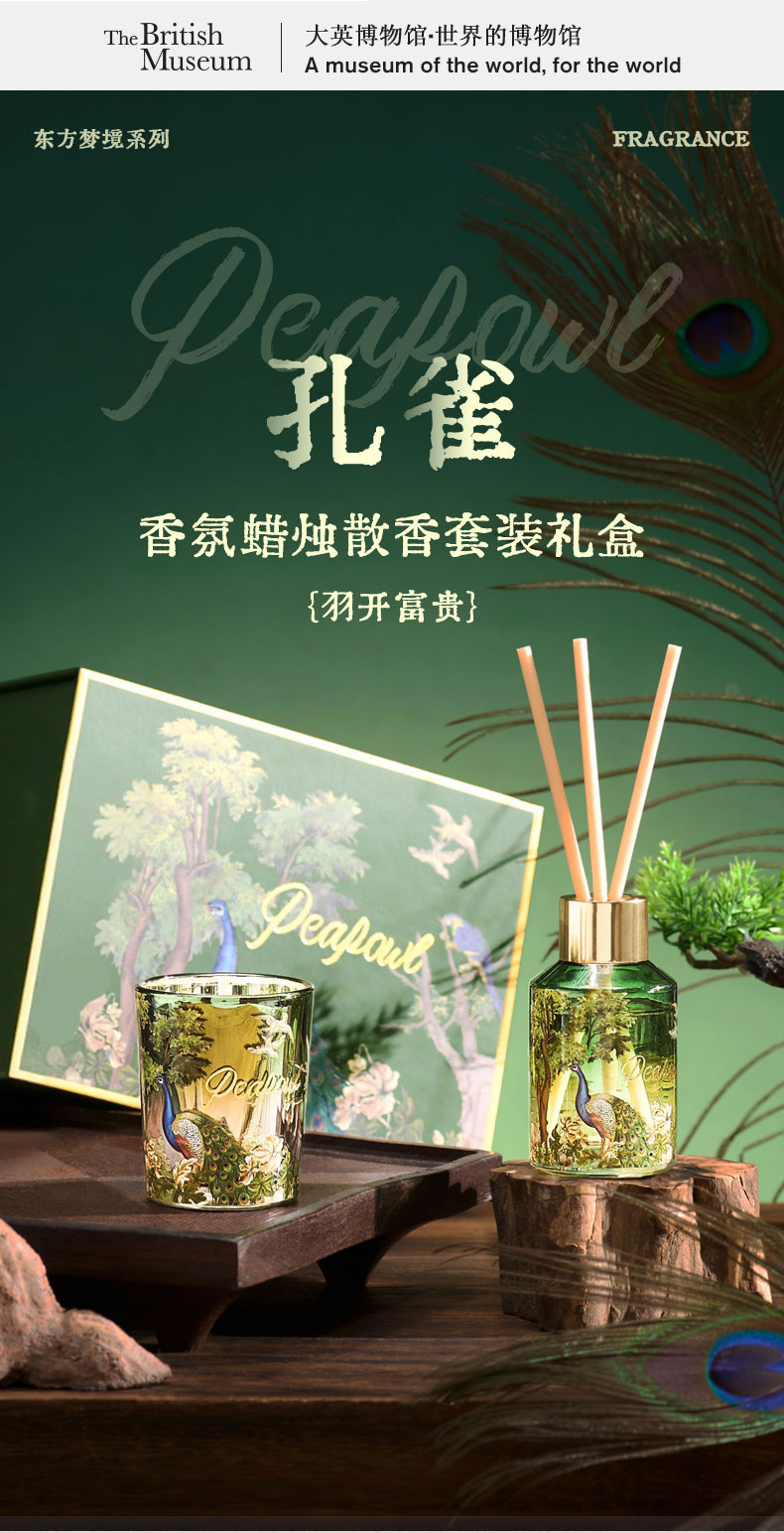 大英博物馆东方梦境系列孔雀香氛蜡烛散香套装礼盒