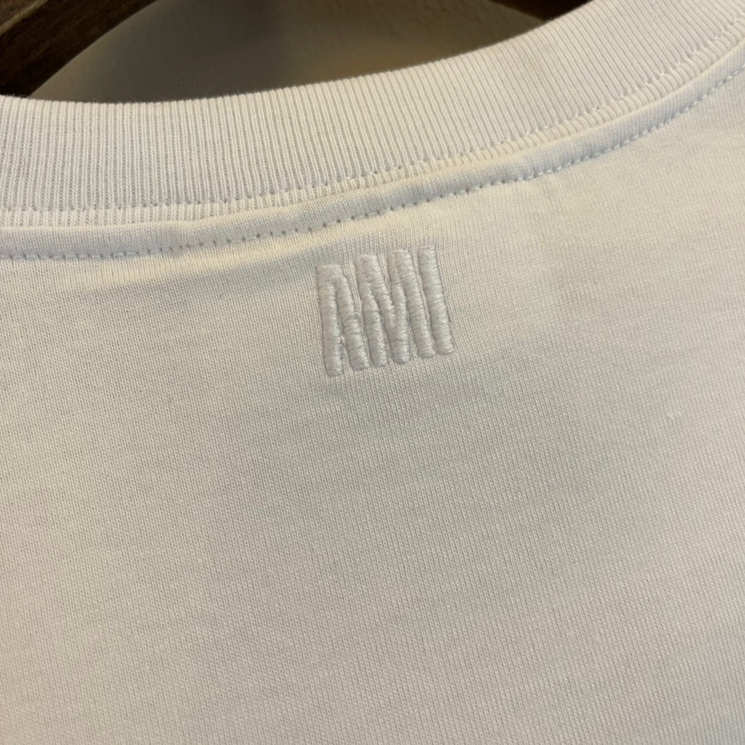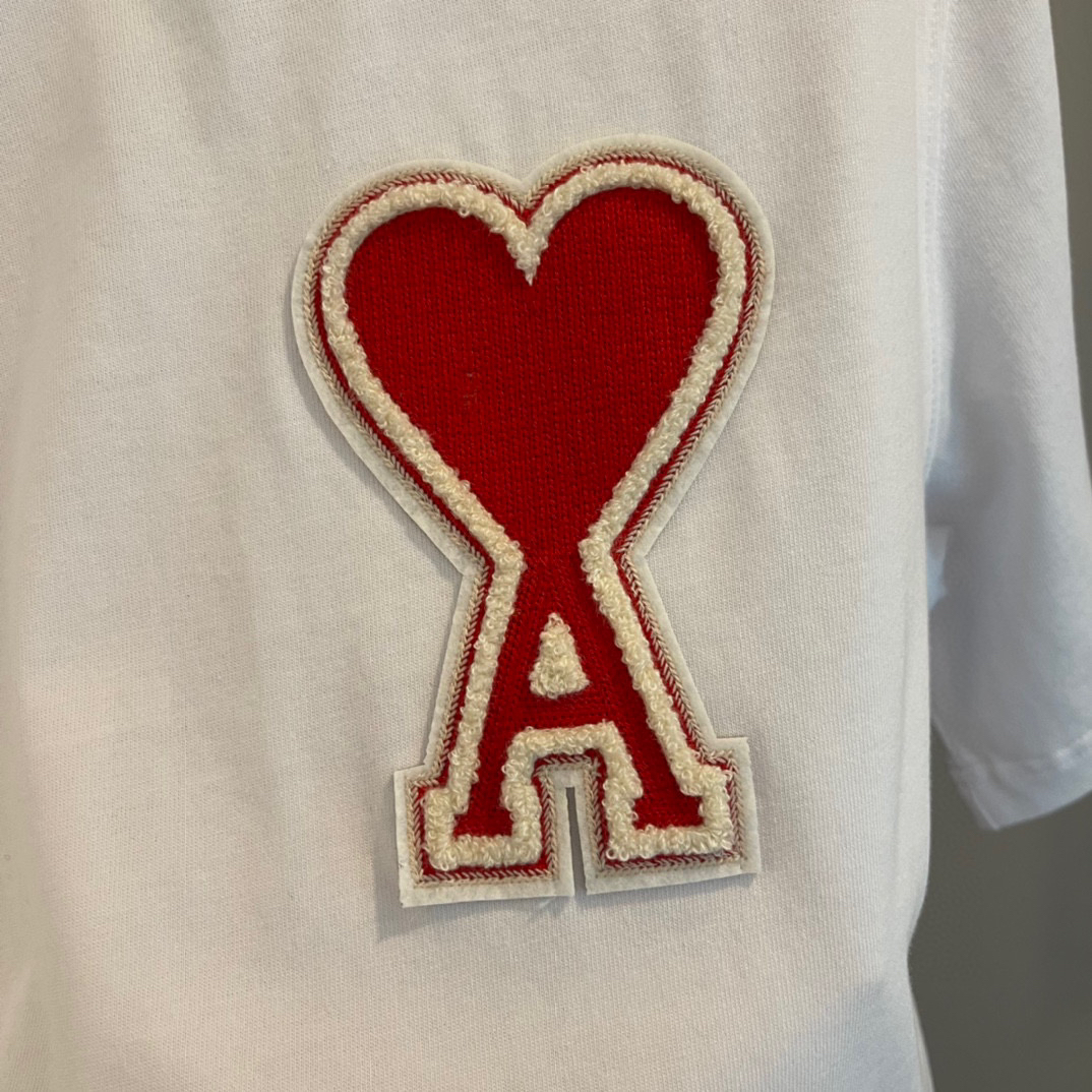 Ami ssDe Coeur贴花短袖T恤-白色配红绣花