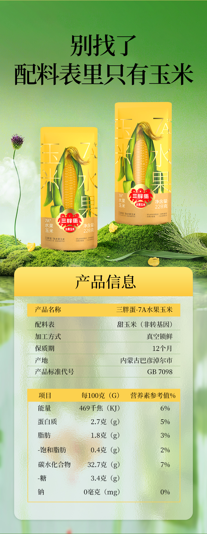 三胖蛋甜糯玉米228g组合