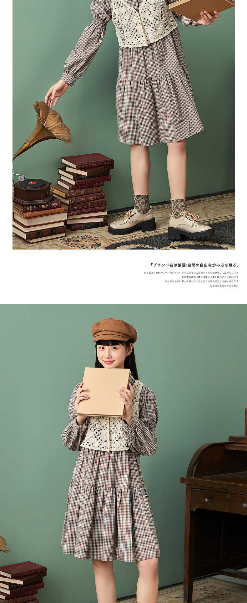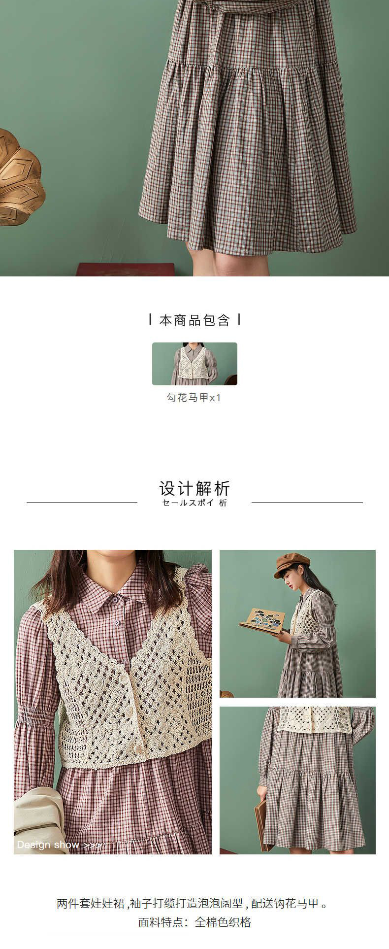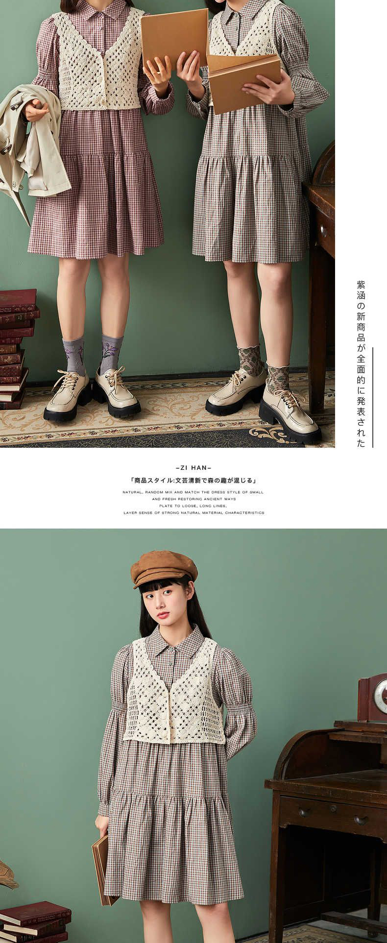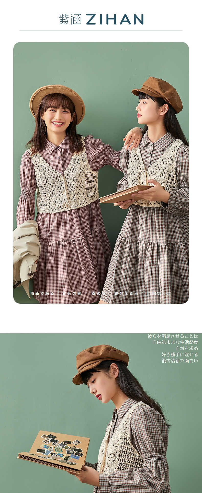 ZIHAN紫涵气质套装连衣裙春款新2022娃娃裙打褶连衣裙设计感马甲两件套Z2Z01AS158