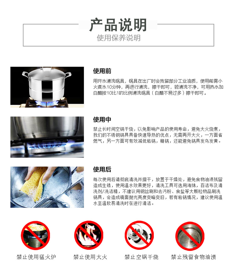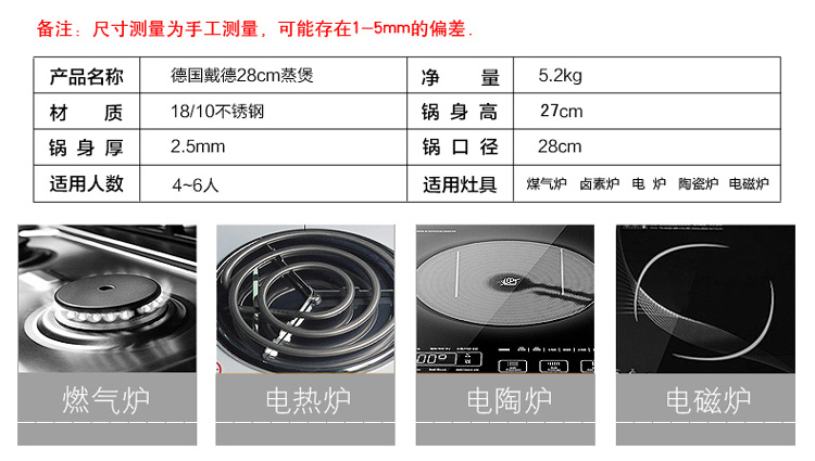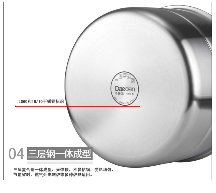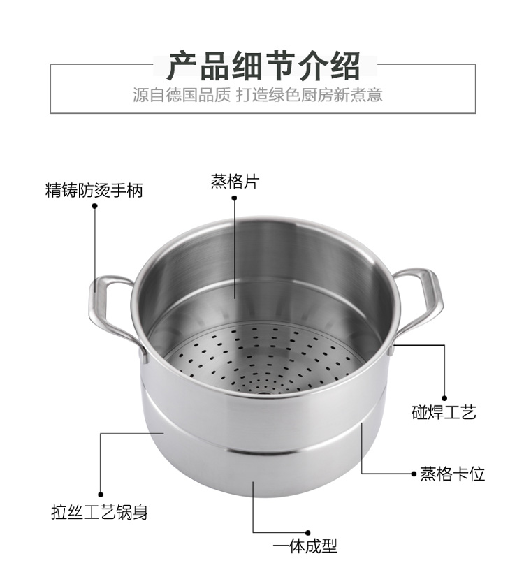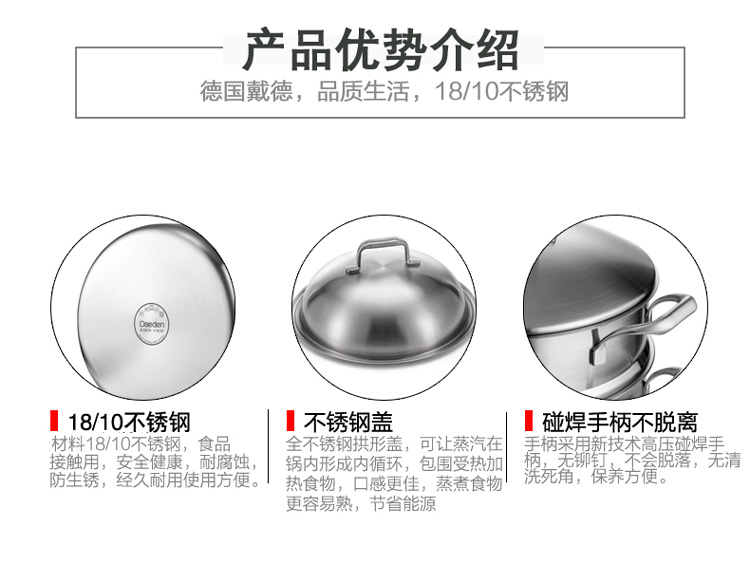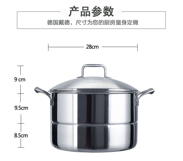 德国戴德18/10不锈钢家用蒸锅单层一体式燃气电磁炉通用28CM