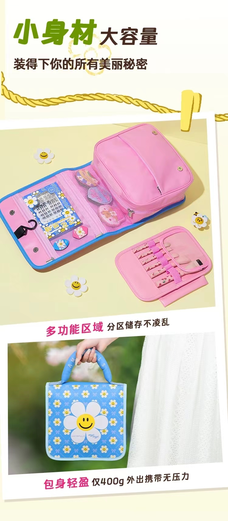 尔木萄wiggle联名化妆包女便携式大容量洗漱收纳分隔区防水可挂式