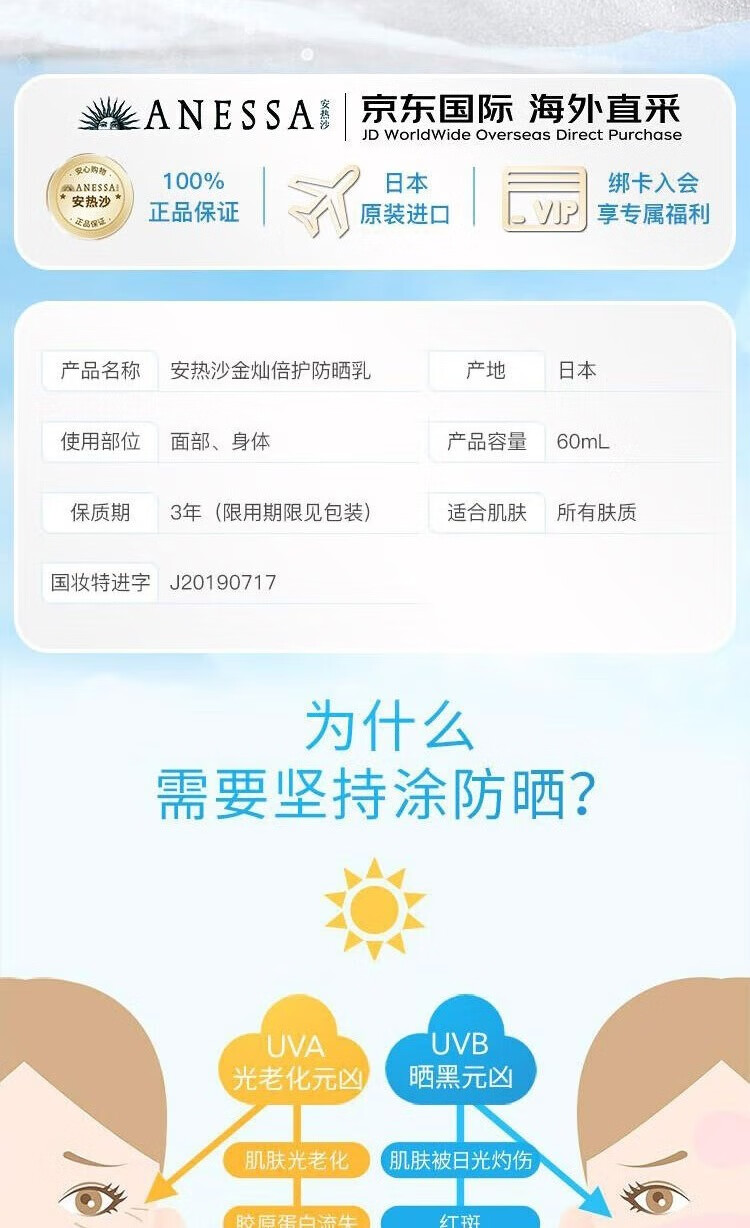 【海豚美购】安热沙小金瓶防晒乳安耐晒防晒霜60ml SPF50+