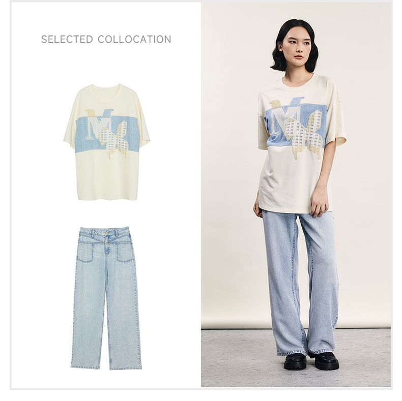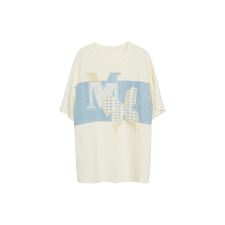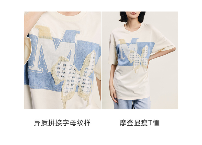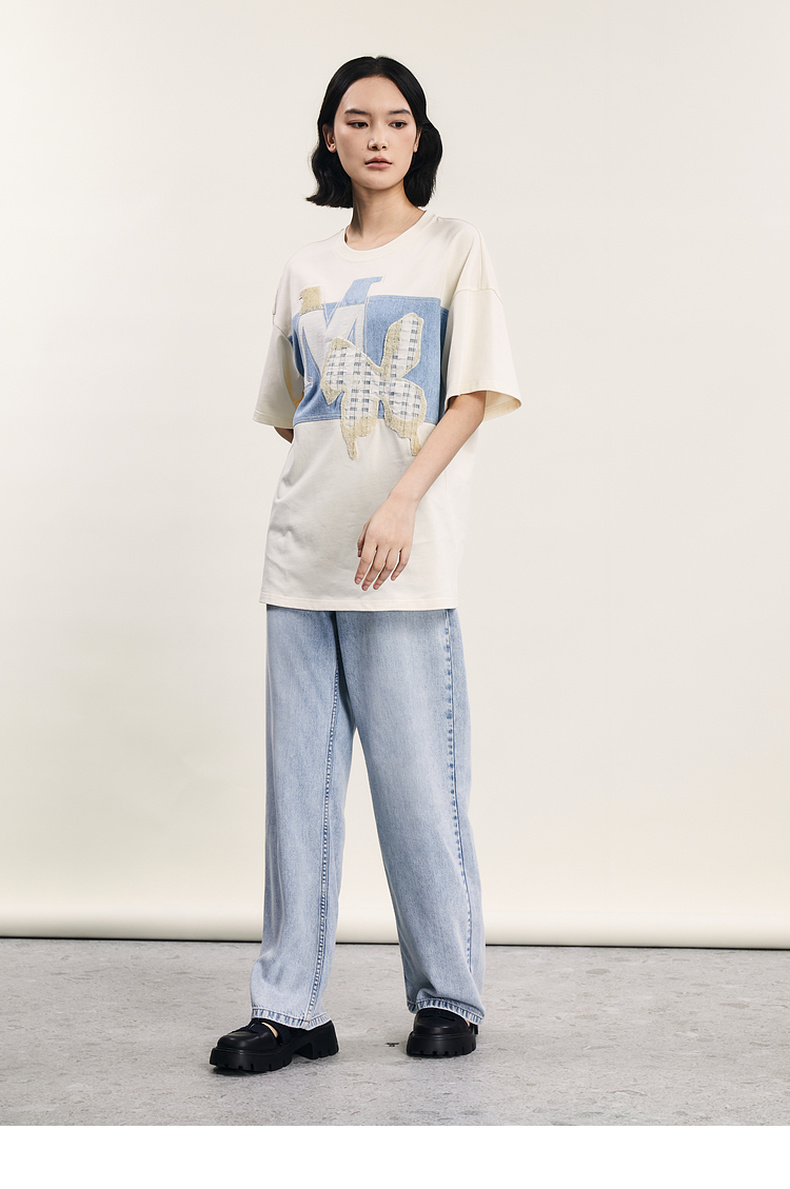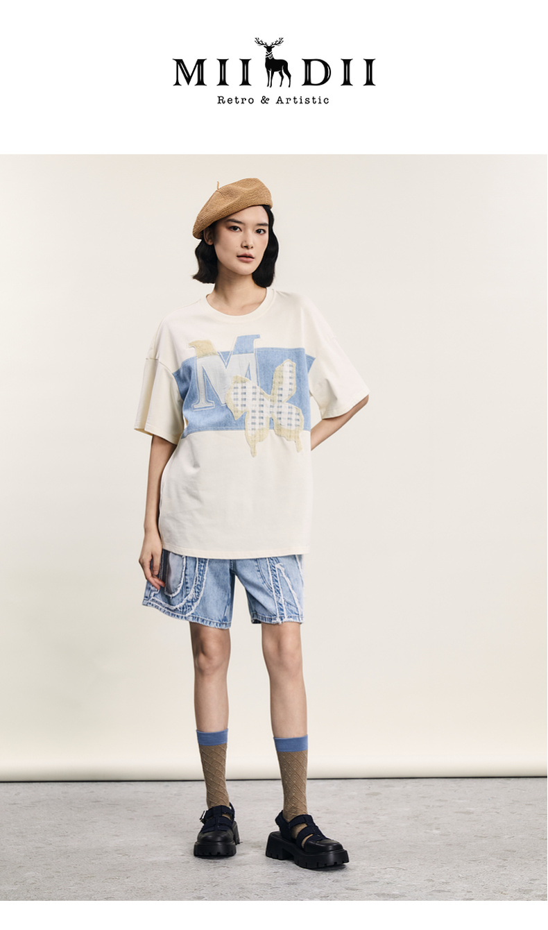 谜底中长款T恤短袖女2024年夏季新品文艺风圆领绣花上衣242MT0593