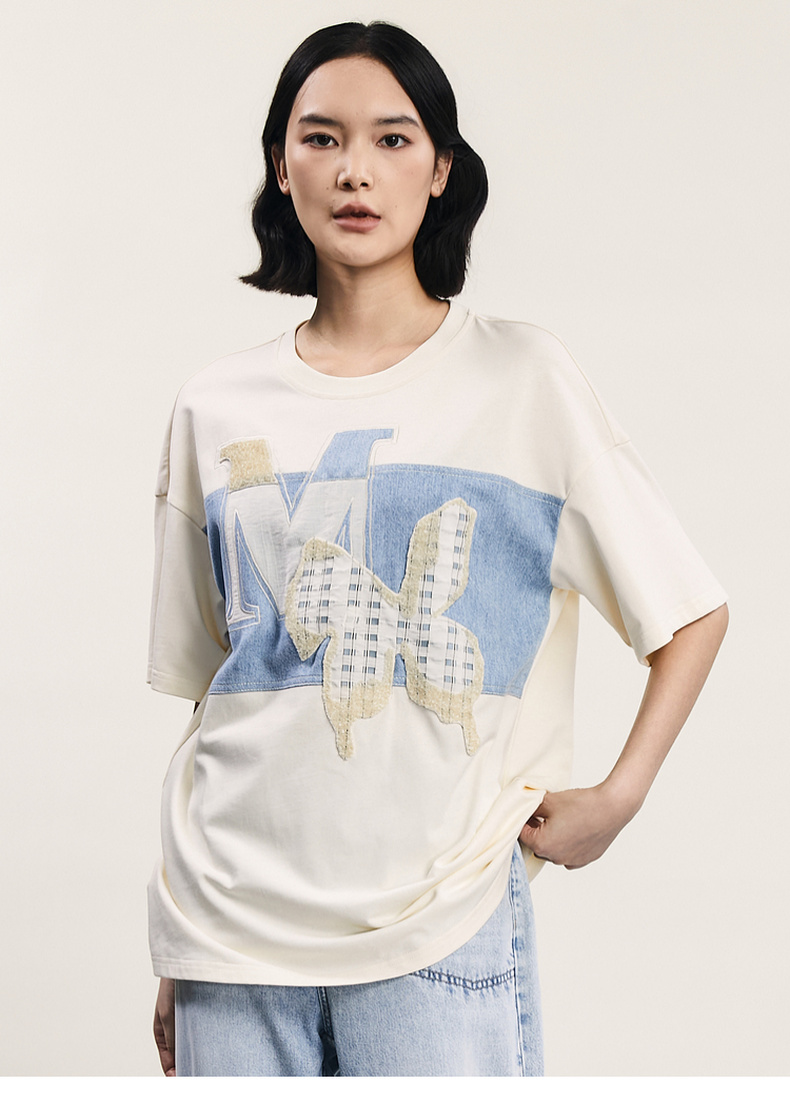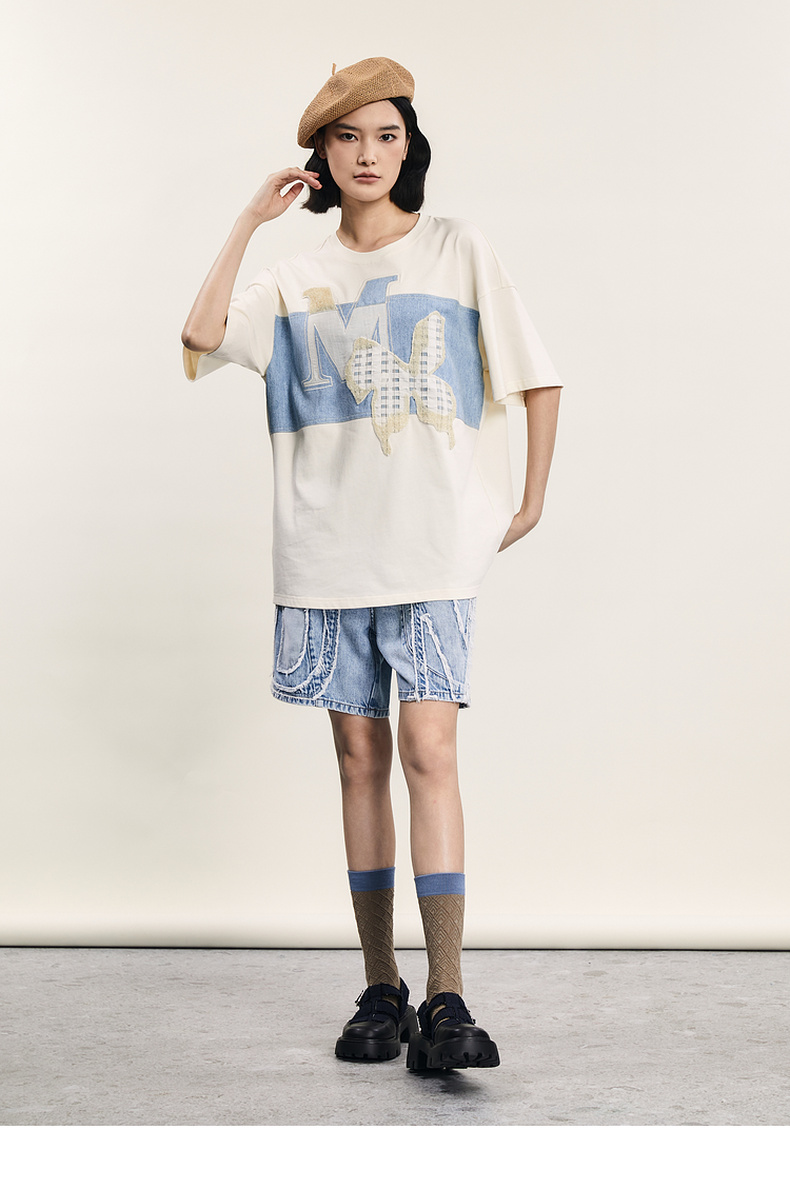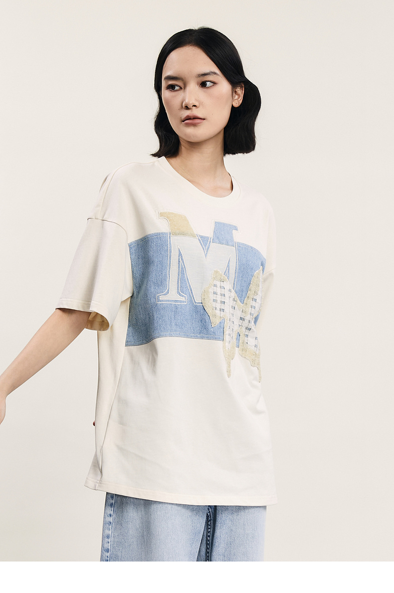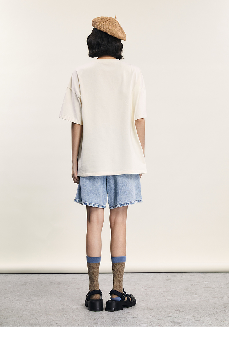 谜底中长款T恤短袖女2024年夏季新品文艺风圆领绣花上衣242MT0593