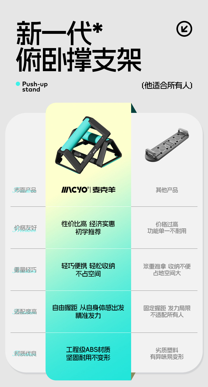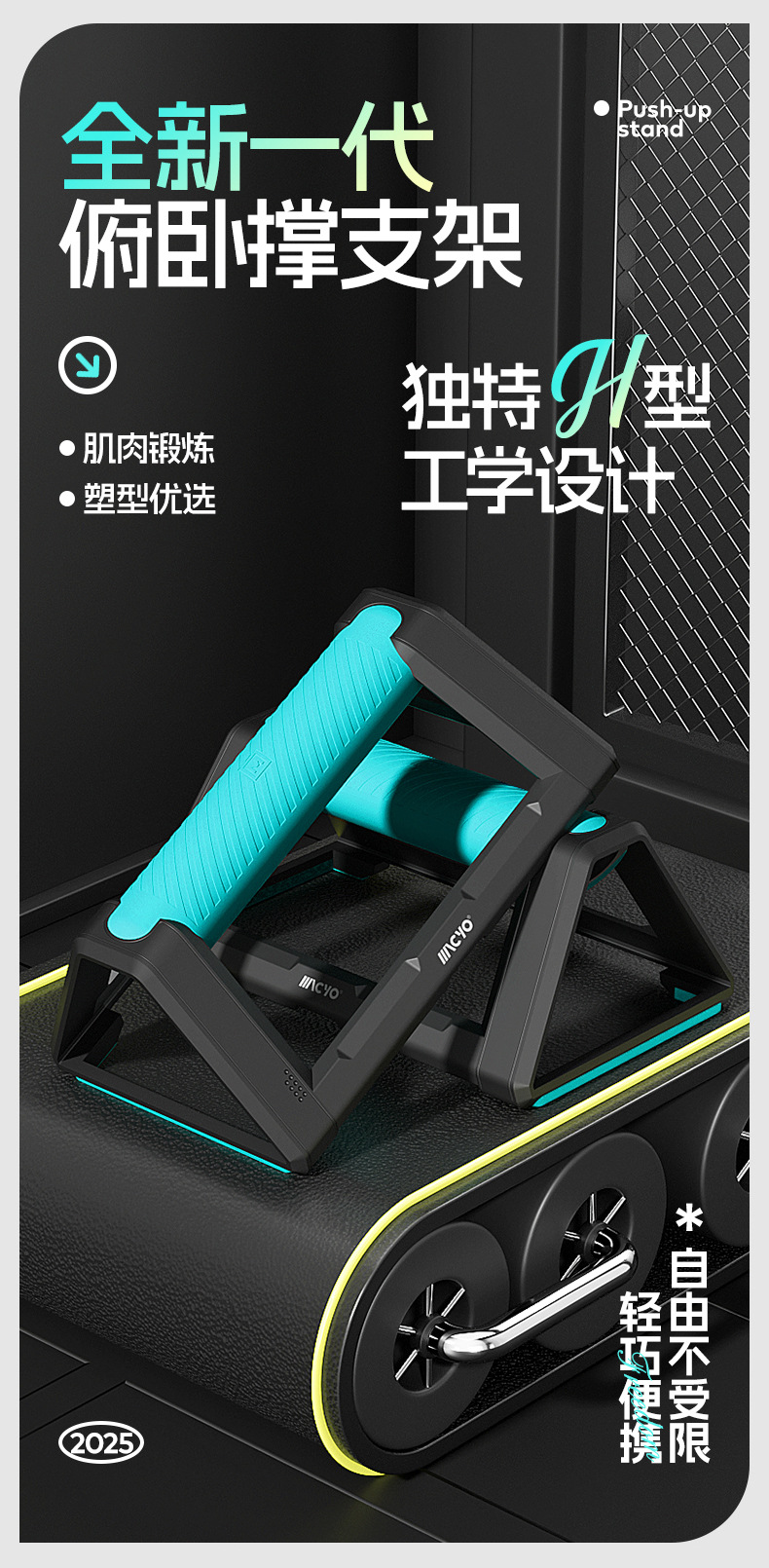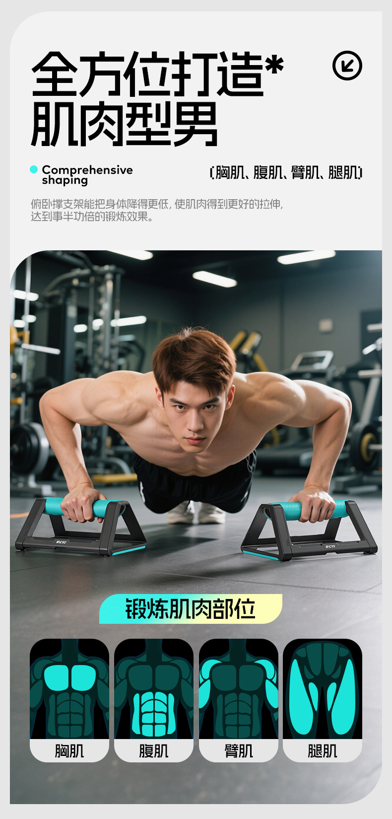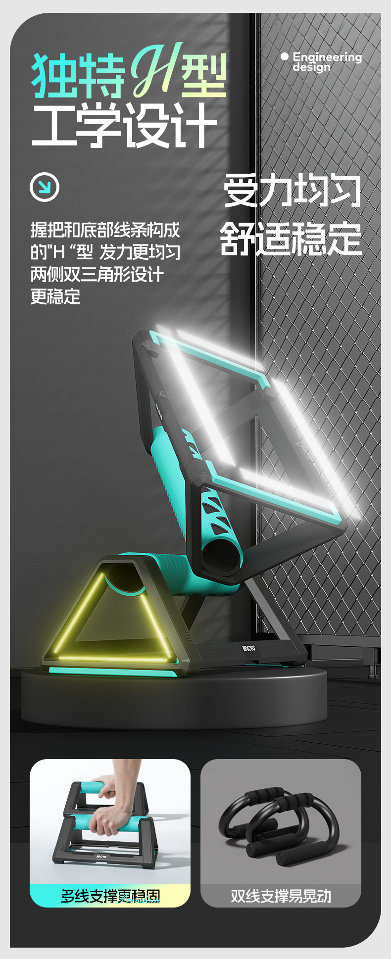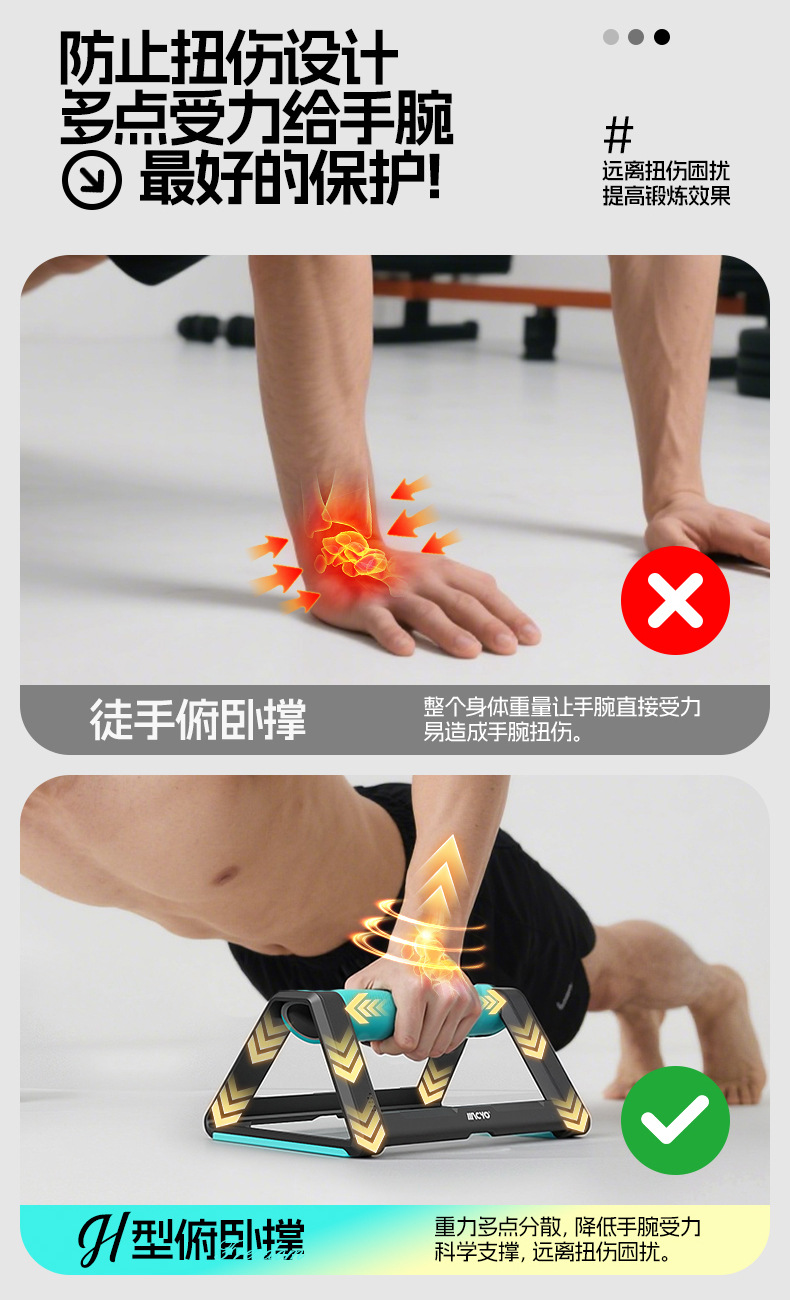 全新H型俯卧撑支架 辅助健身轮腹肌速成材男锻炼胸肌家用训练