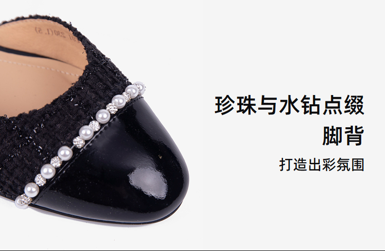 千百度低跟麻花钻带玛丽珍女鞋小香风浅口晚晚单鞋A25125205
