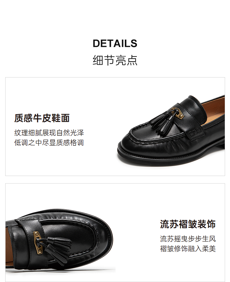 【上新】千百度流苏乐福鞋女豆豆鞋2026春季新款厚底通勤皮鞋单鞋A26132398
