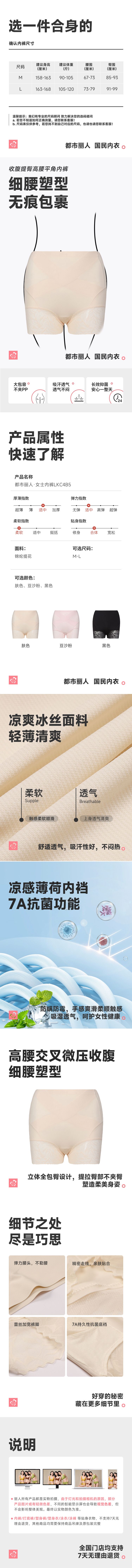 都市丽人女士内裤锦纶提花平角裤轻塑美臀系列LKC4B5