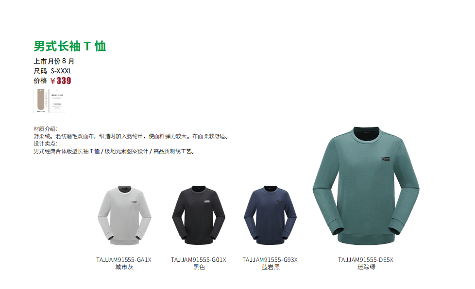探路者男式长袖T恤TAJJAM91555